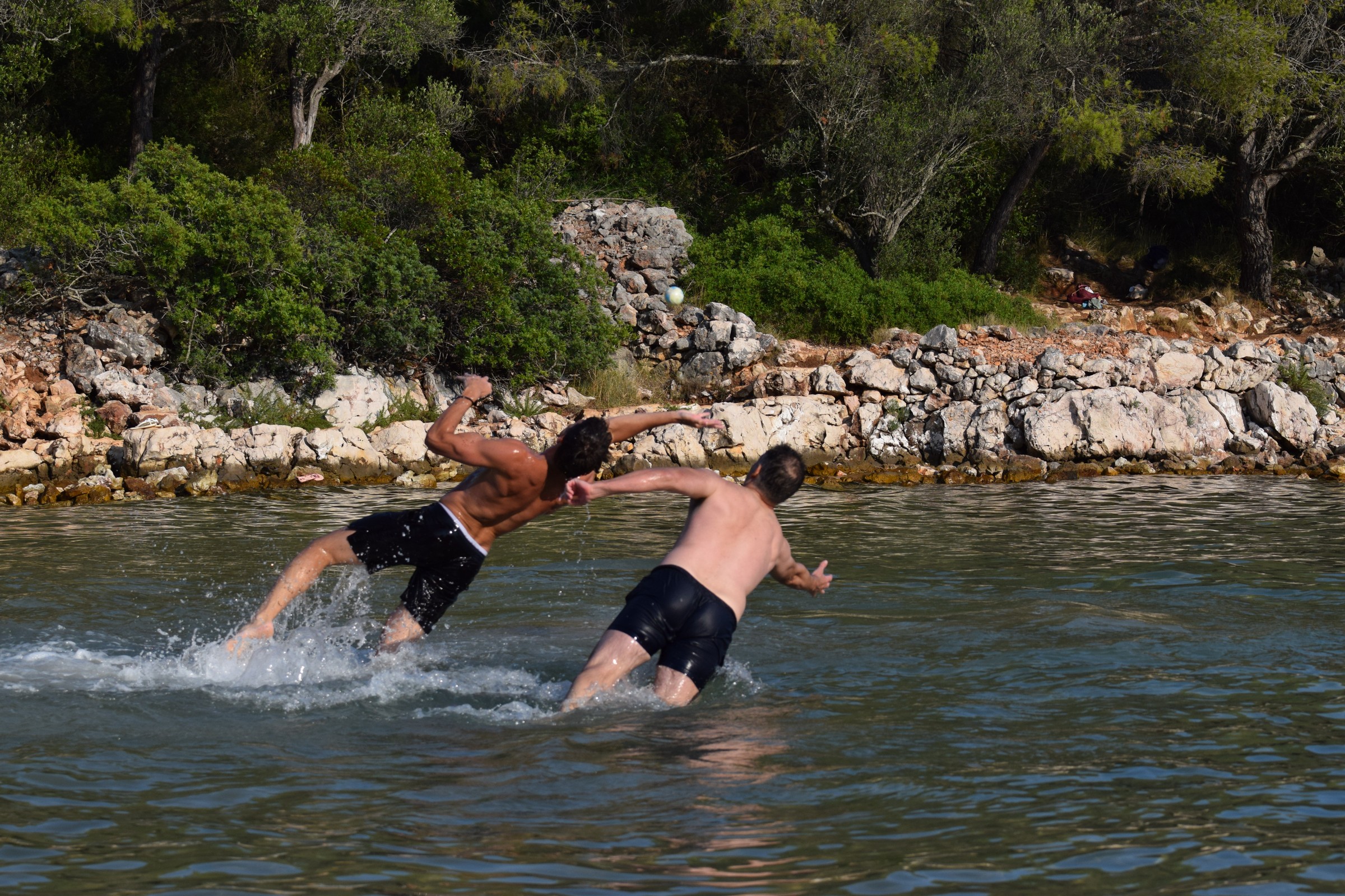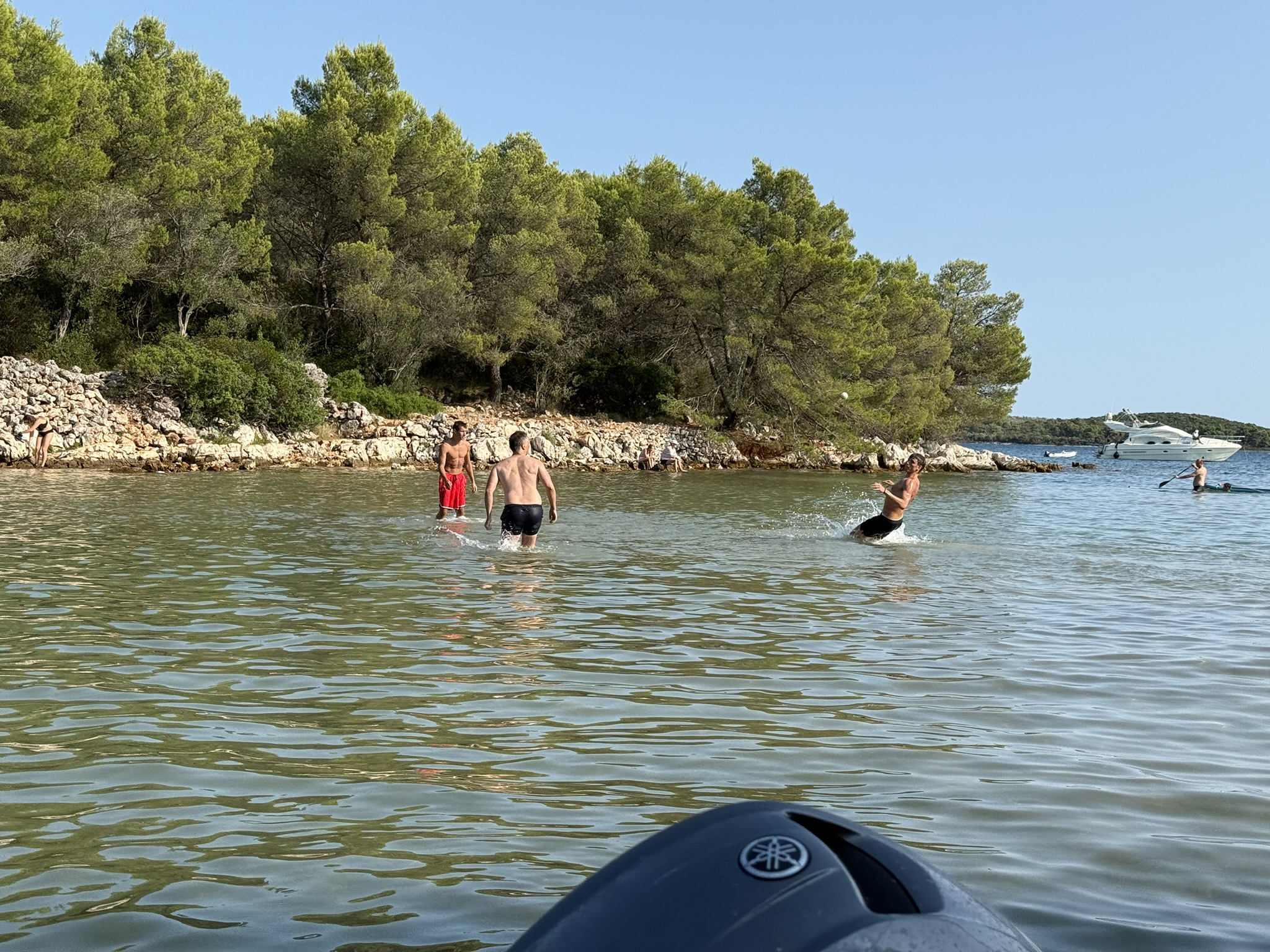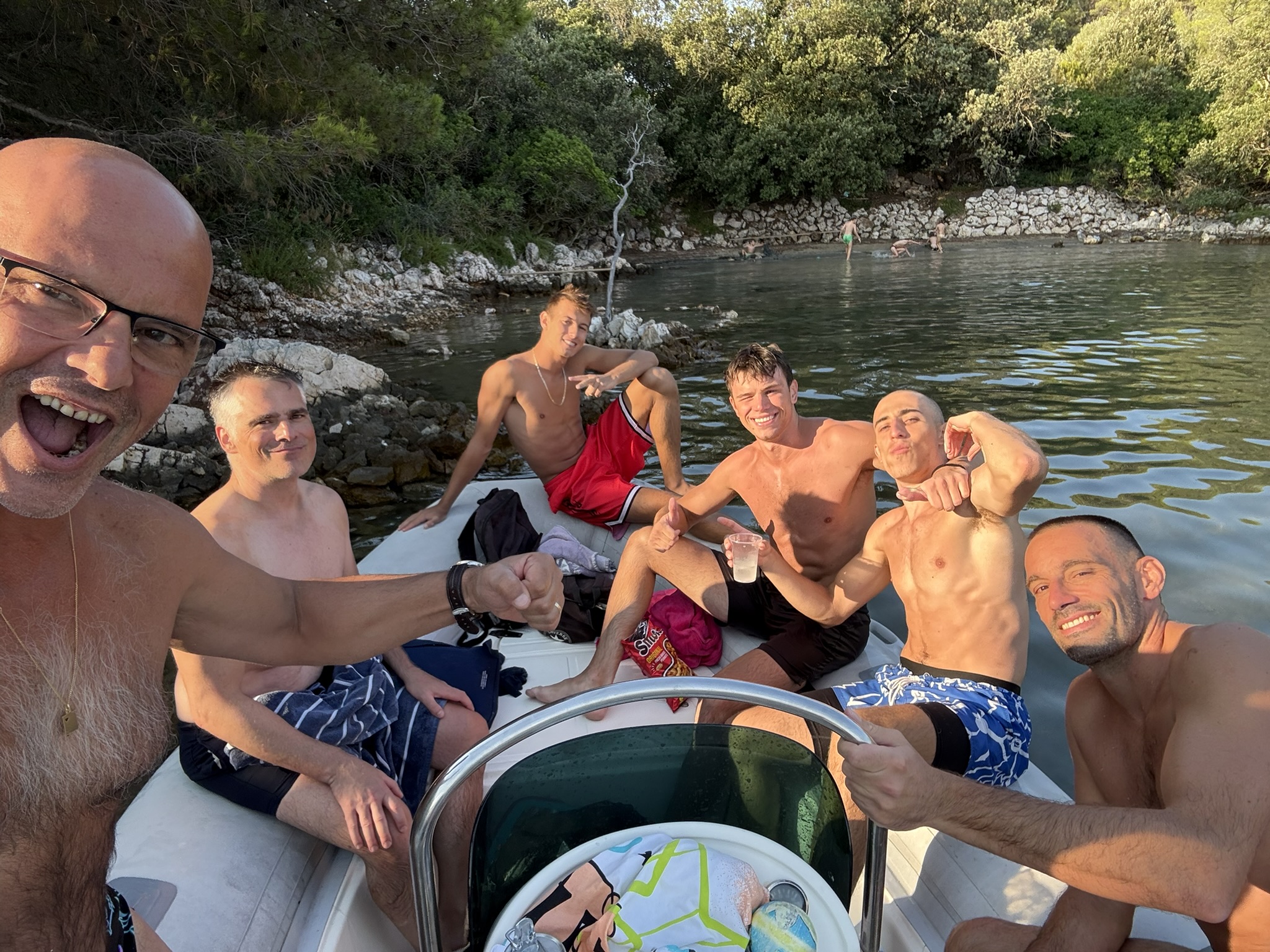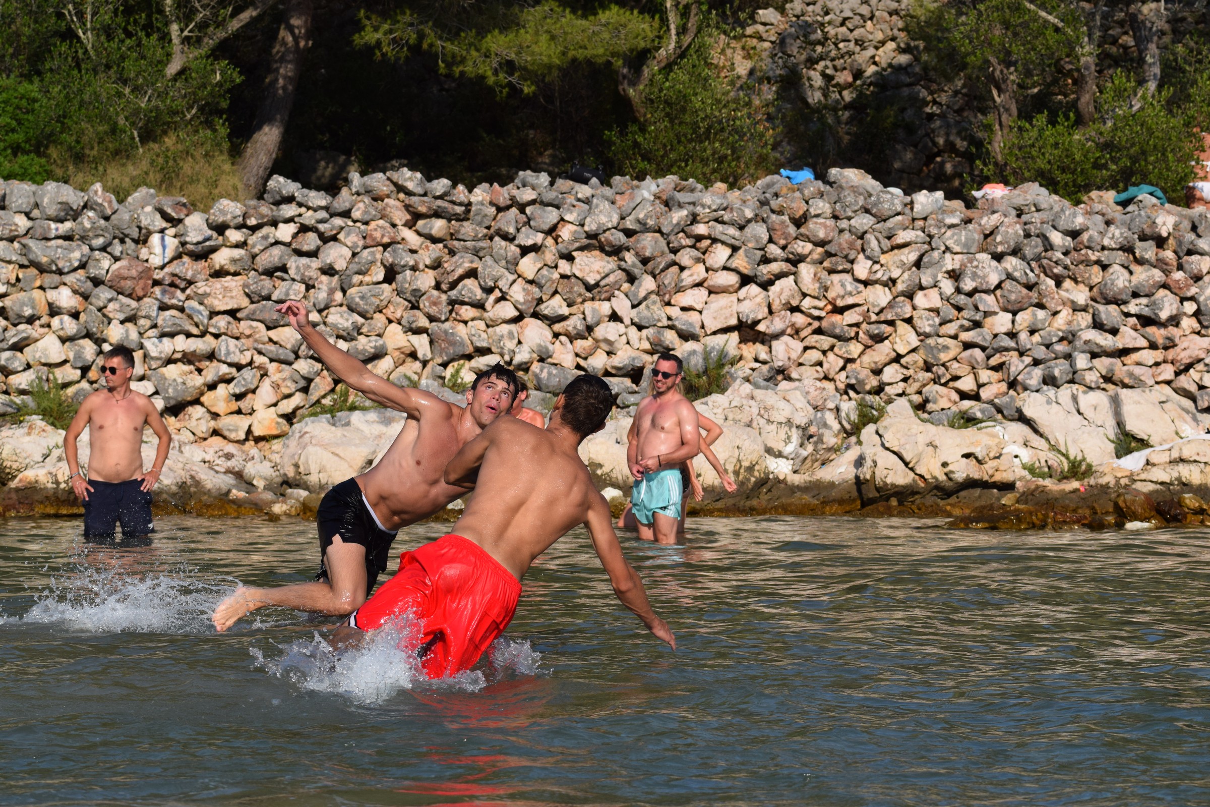 Nakon nekih uru vremena picigina, kum Jure i ja smo pošli malo otpočinuti na brod (Sergej se negdje napola runde odvojio i priključio obitelji), ja sam uzeo fotoaparat i još pet minuta poslikao četvoricu mladaca kako letaju, a kad sam se vratio na brod sam mobitelom snimio i par videa.