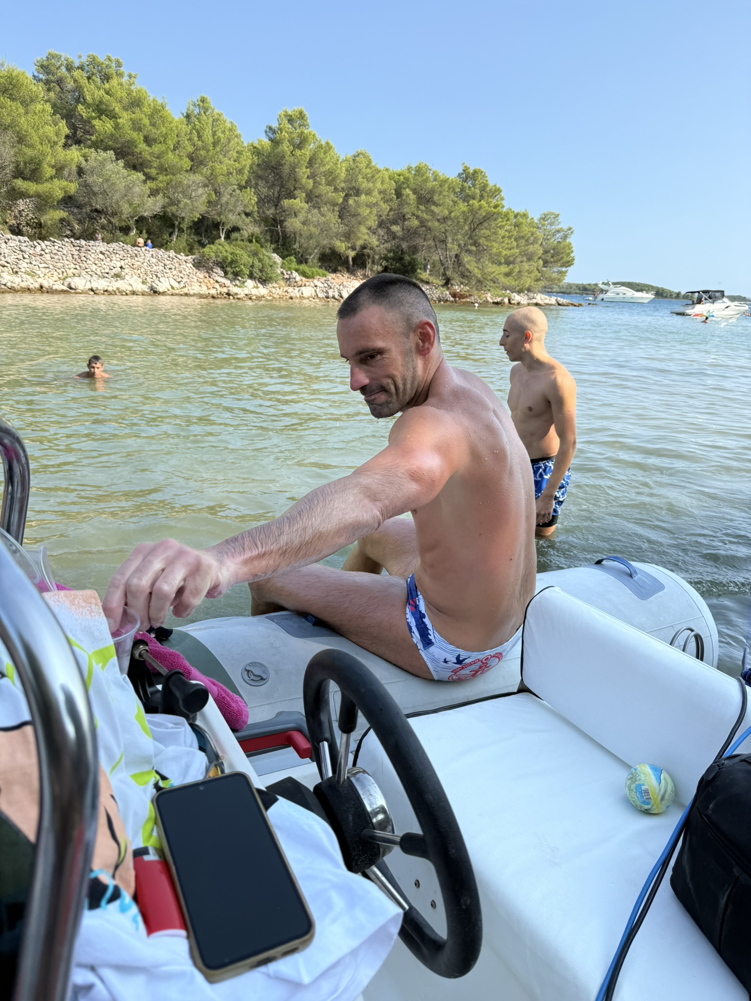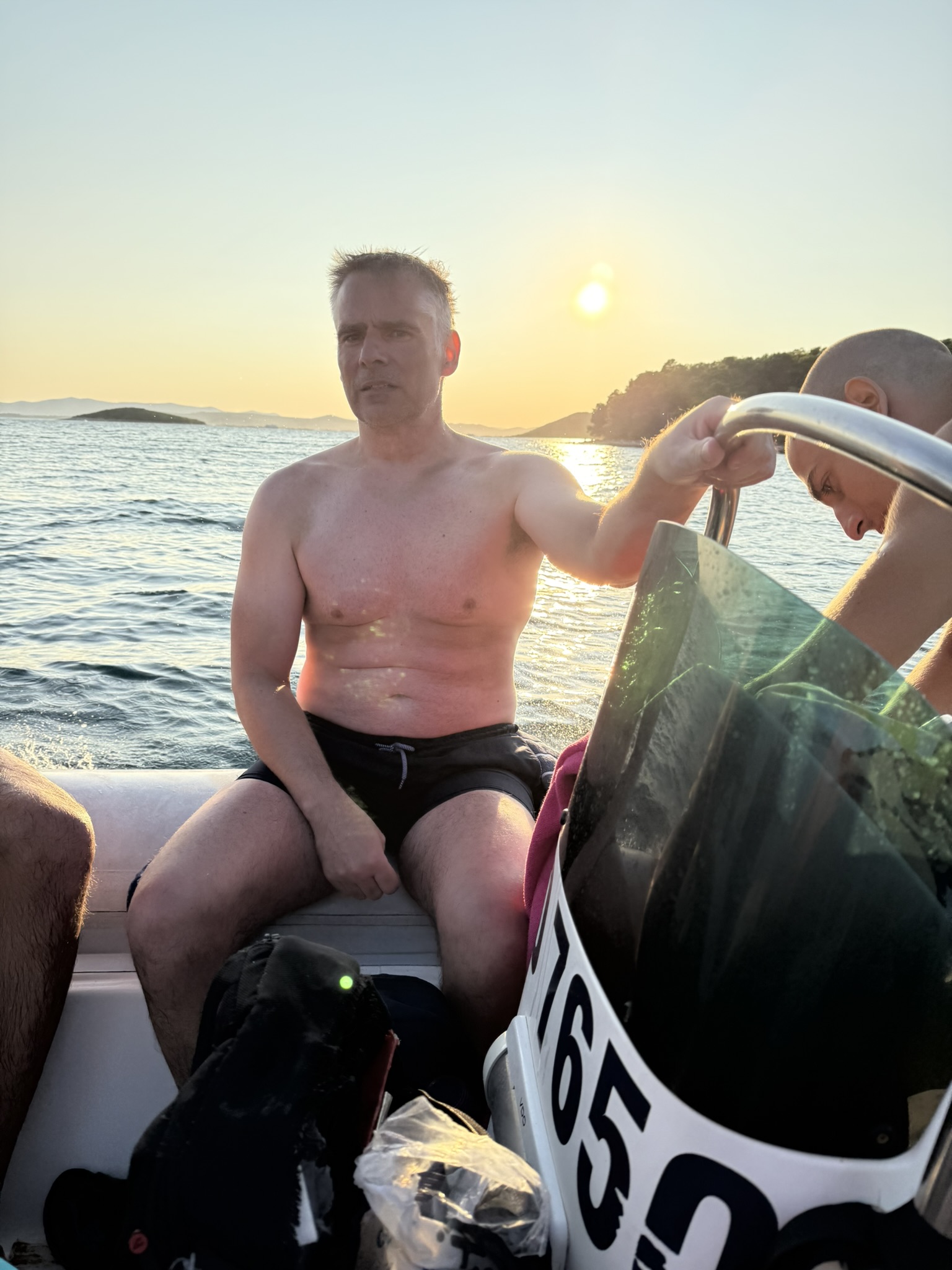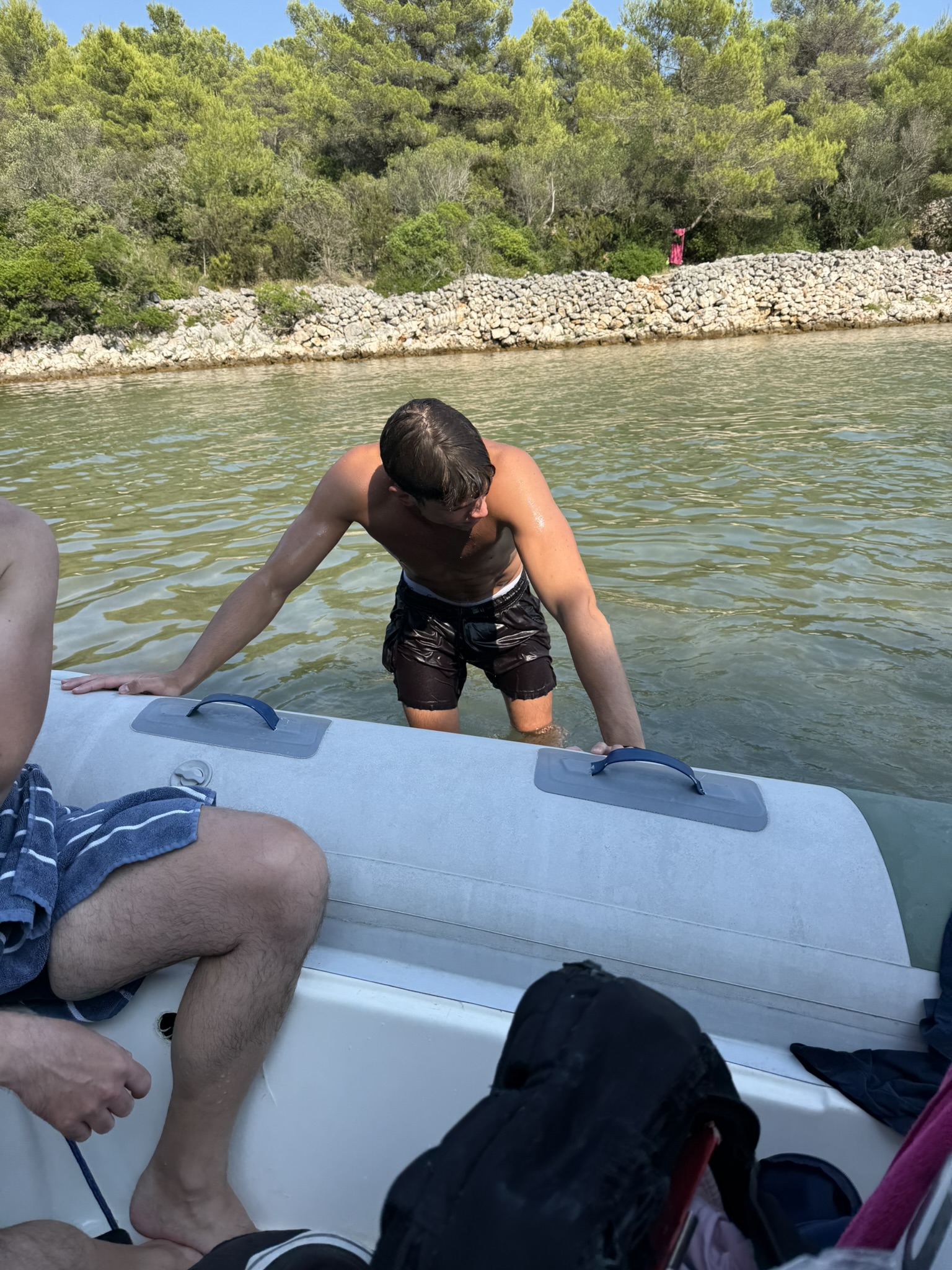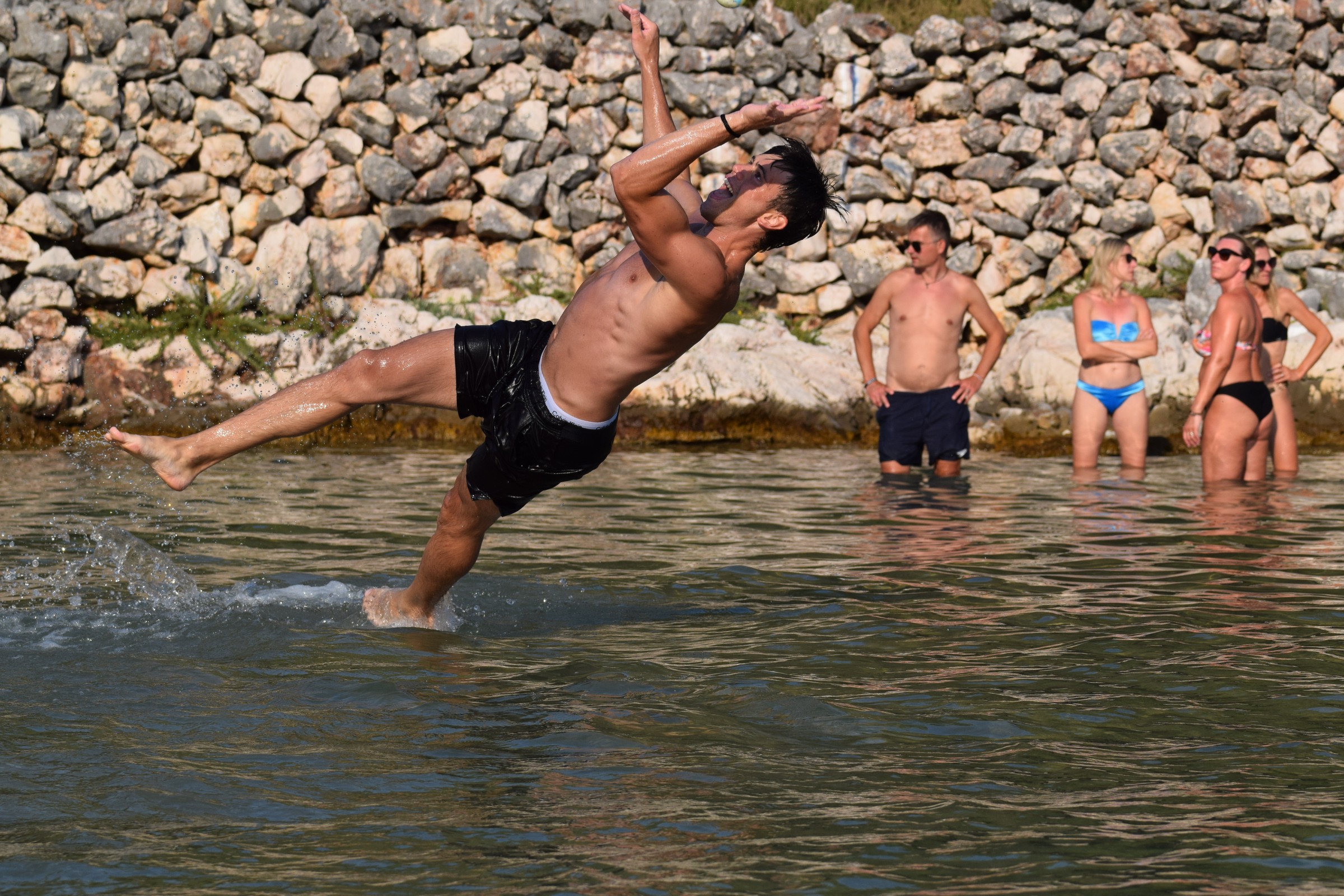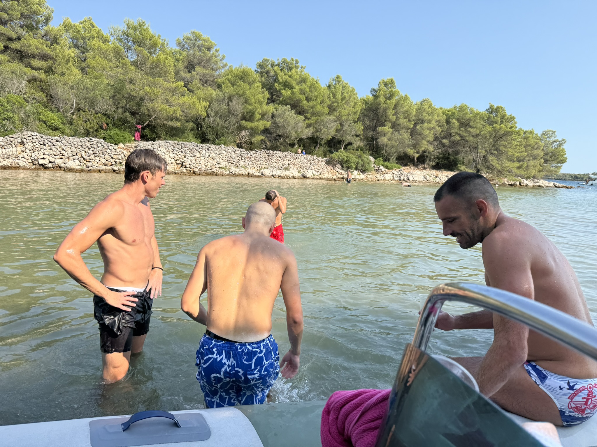 Nakon nekih uru vremena picigina, kum Jure i ja smo pošli malo otpočinuti na brod (Sergej se negdje napola runde odvojio i priključio obitelji), ja sam uzeo fotoaparat i još pet minuta poslikao četvoricu mladaca kako letaju, a kad sam se vratio na brod sam mobitelom snimio i par videa.