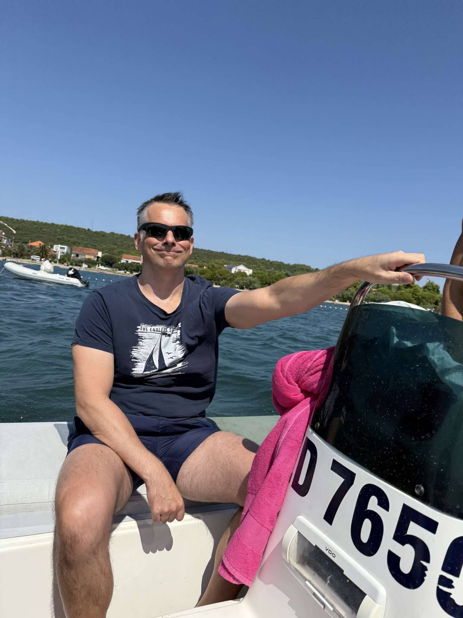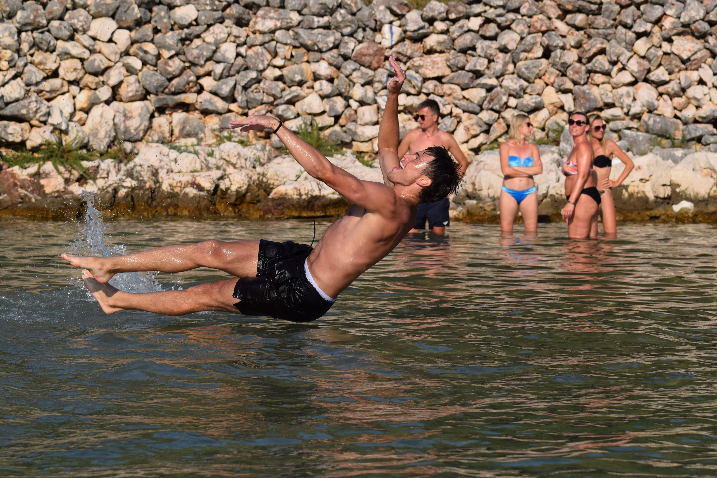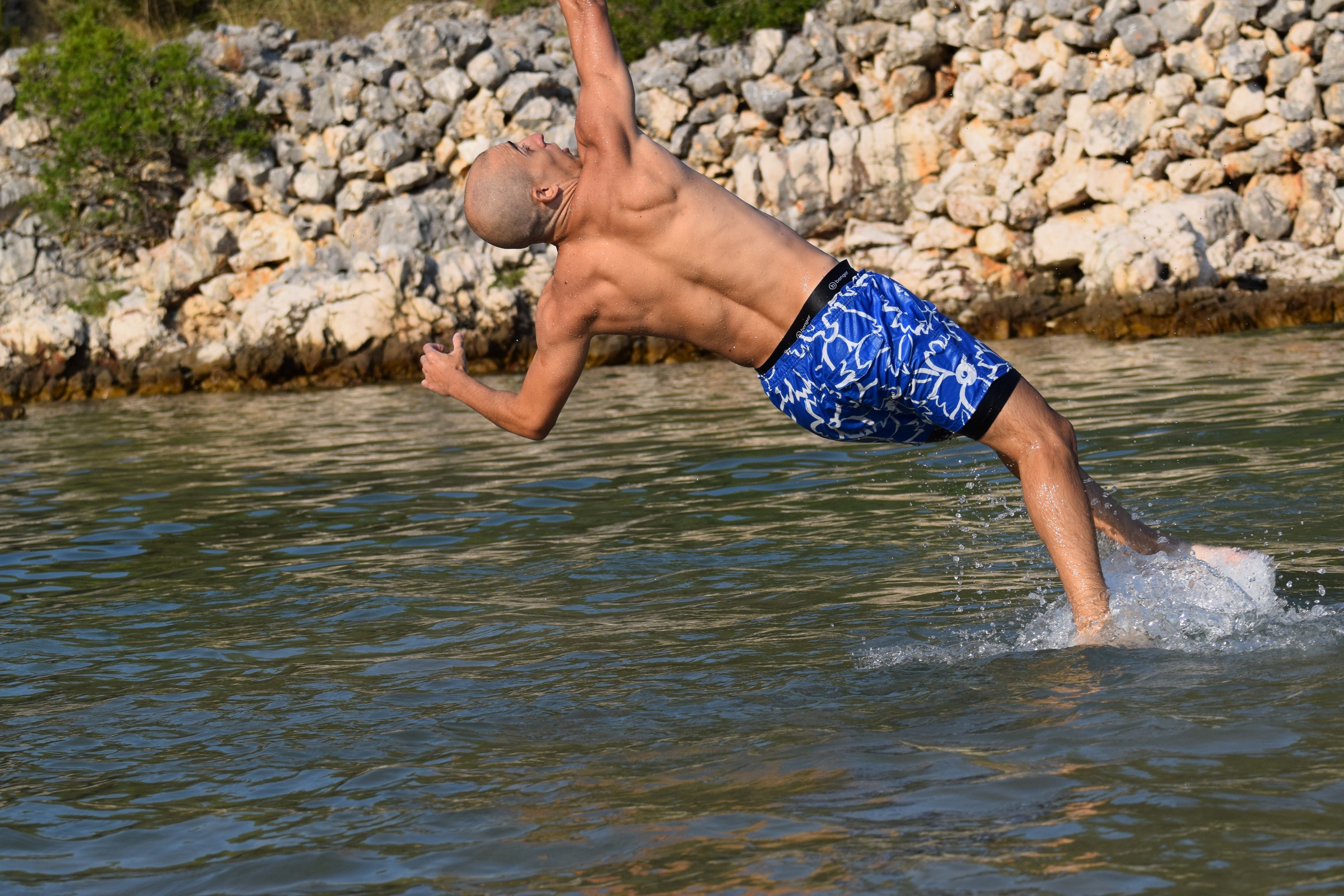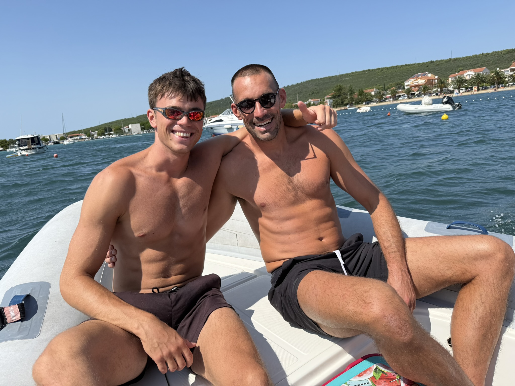Nakon nekih uru vremena picigina, kum Jure i ja smo pošli malo otpočinuti na brod (Sergej se negdje napola runde odvojio i priključio obitelji), ja sam uzeo fotoaparat i još pet minuta poslikao četvoricu mladaca kako letaju, a kad sam se vratio na brod sam mobitelom snimio i par videa.