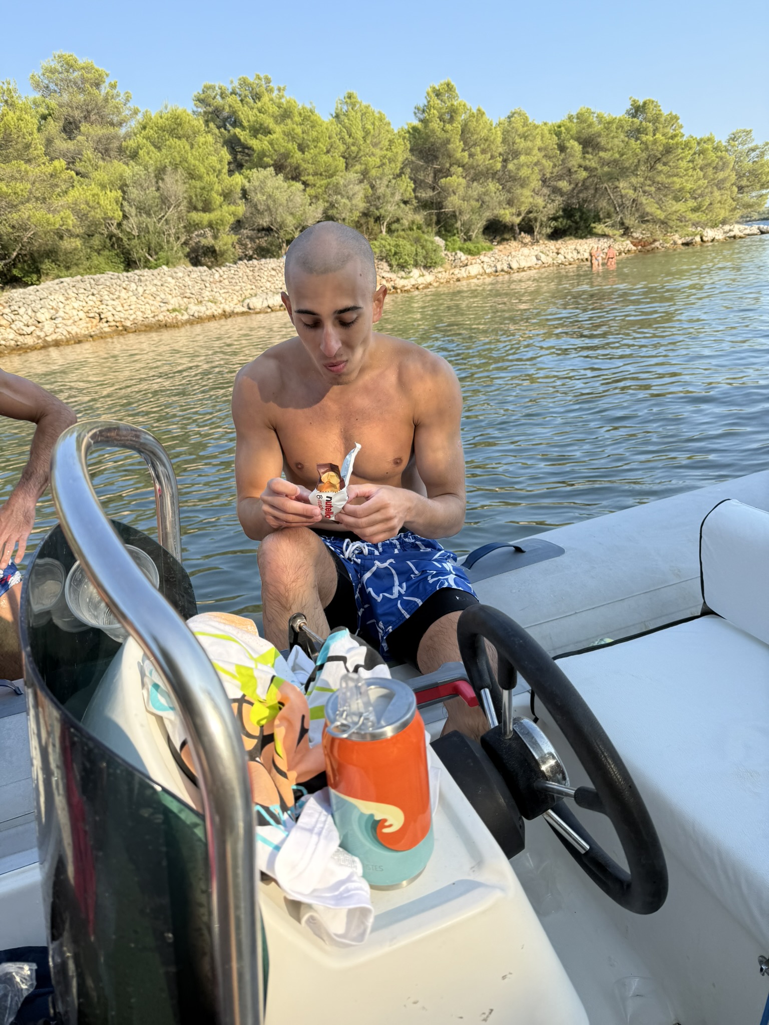 Ja i Jure smo gledali s broda, a oni se itaju … i itaju … letaju ka sikire … vrime ide a loptica ka’ da im se lipi za ruke … ne mogu promašiti … parada na paradu, sva četvorica … igrali su priko dvi minute, i to su sasvim sigurno bile najbolje dvi minute picigina ovo lito 💪.