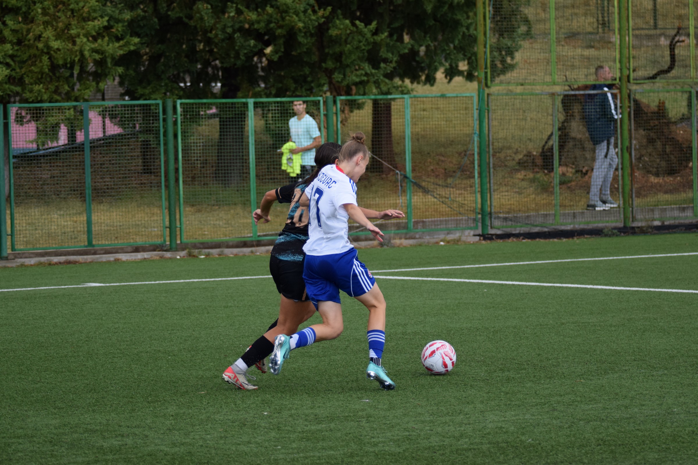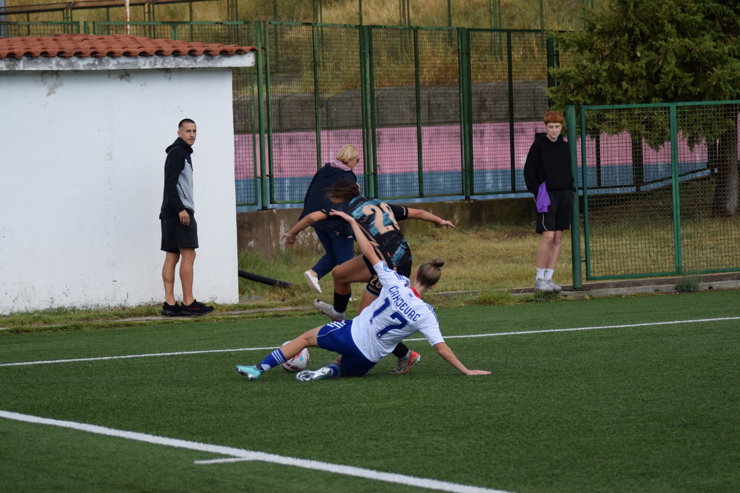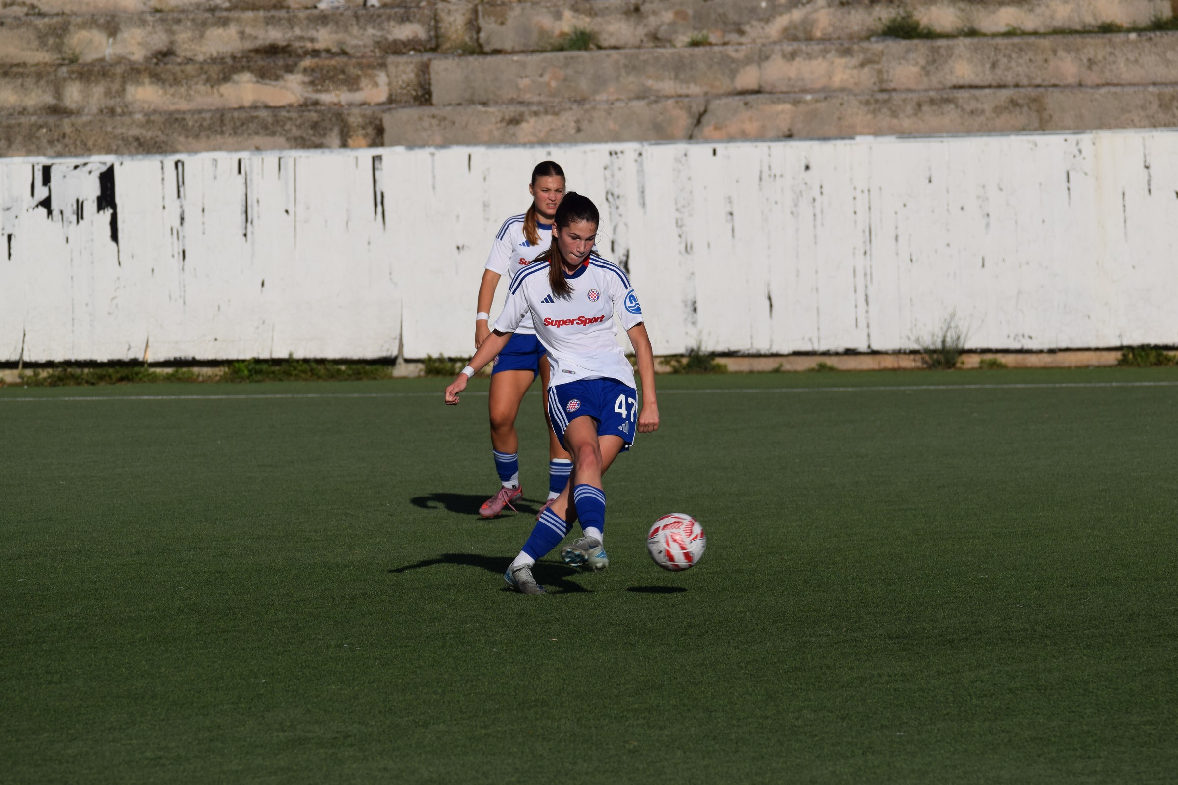 Prebacio sam se u drugu traku, malo smo požurili do Splita, i na pomoćnom igralištu Poljuda, gdje ŽNK Hajduk igra svoje domaće utakmice, sam bio u 15:50 … ja i još troje ljudi na tribinama 😂 (kasnije, kad je granulo sunce, se gledalište popunilo) … a jedan od tih troje, skroooz lijevo na početku tribina … Vanja Kovač, trener seniorske ekipe Agrama. Agramerke igraju sutra protiv Splita u Zagrebu, i to je lijepa posvećenost trenera 👍.