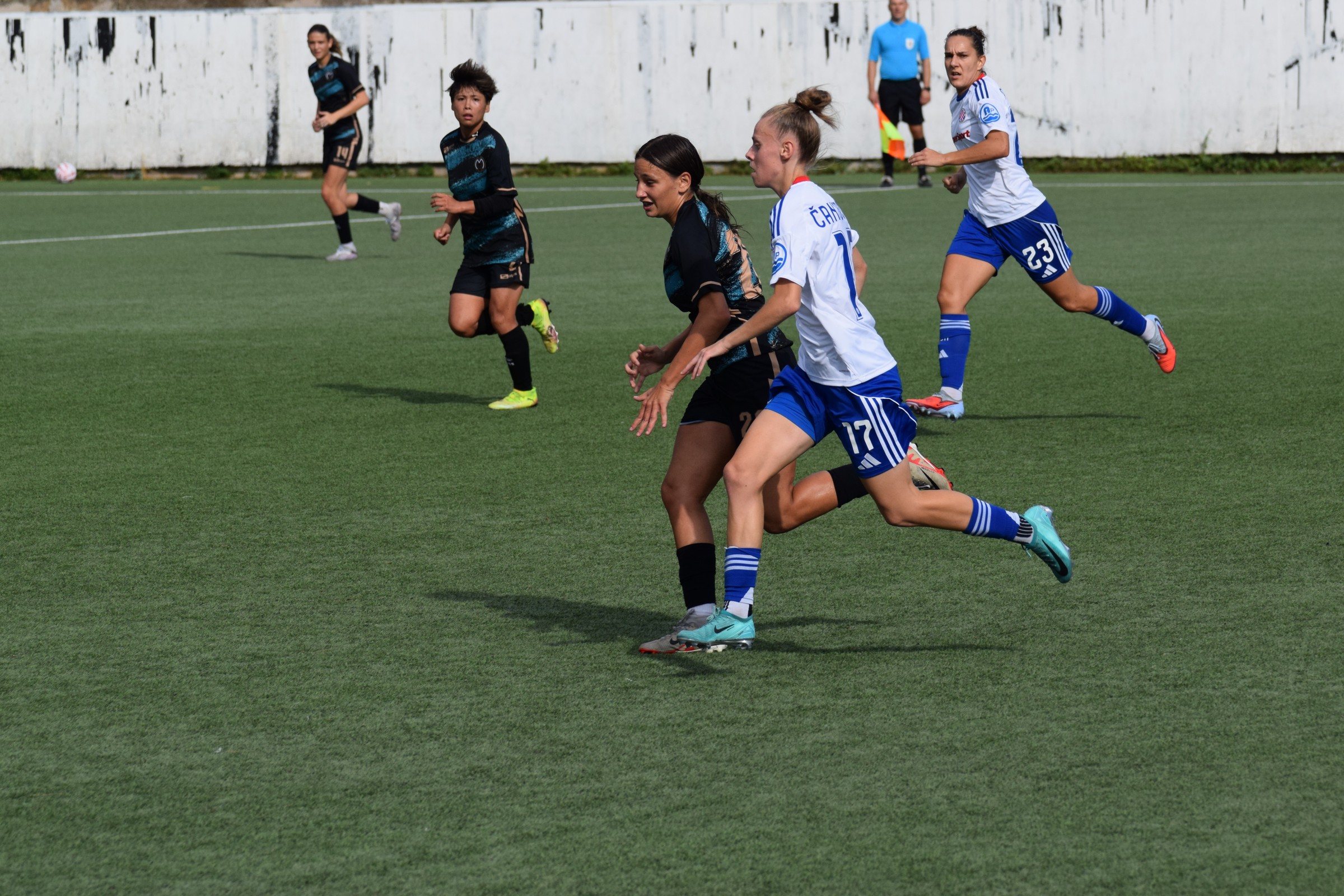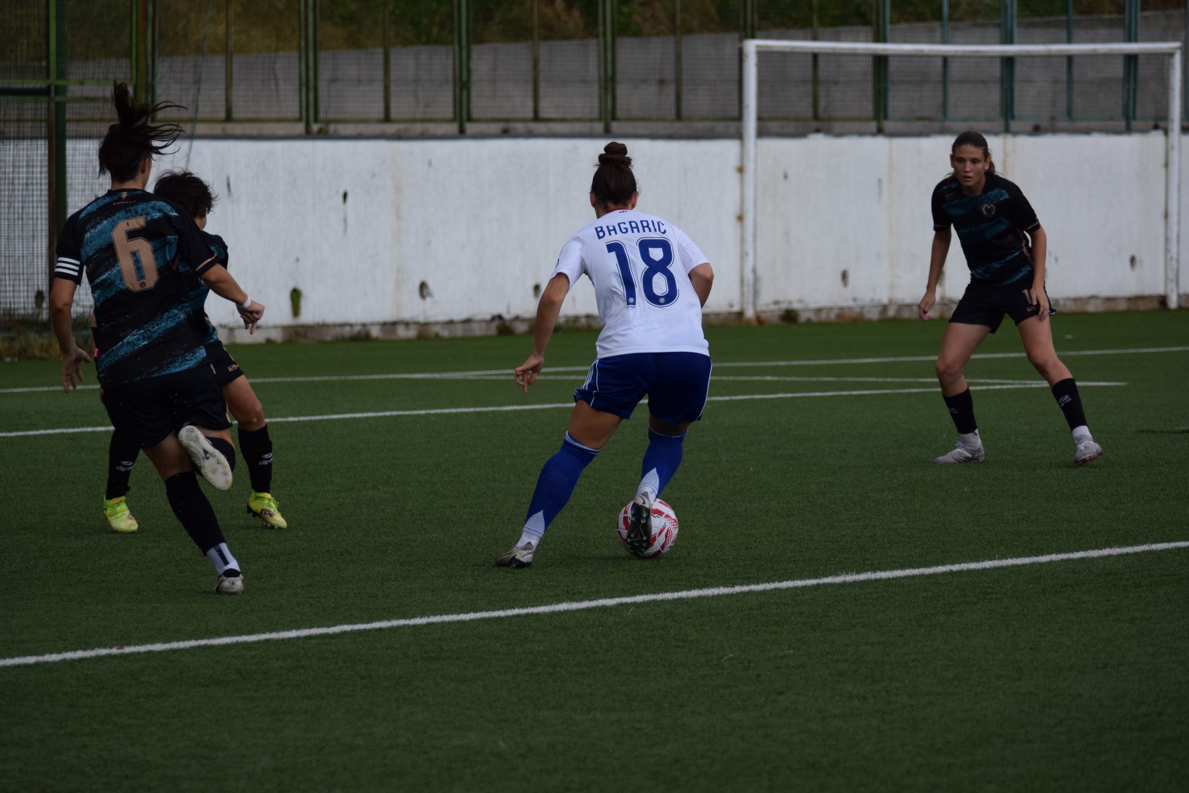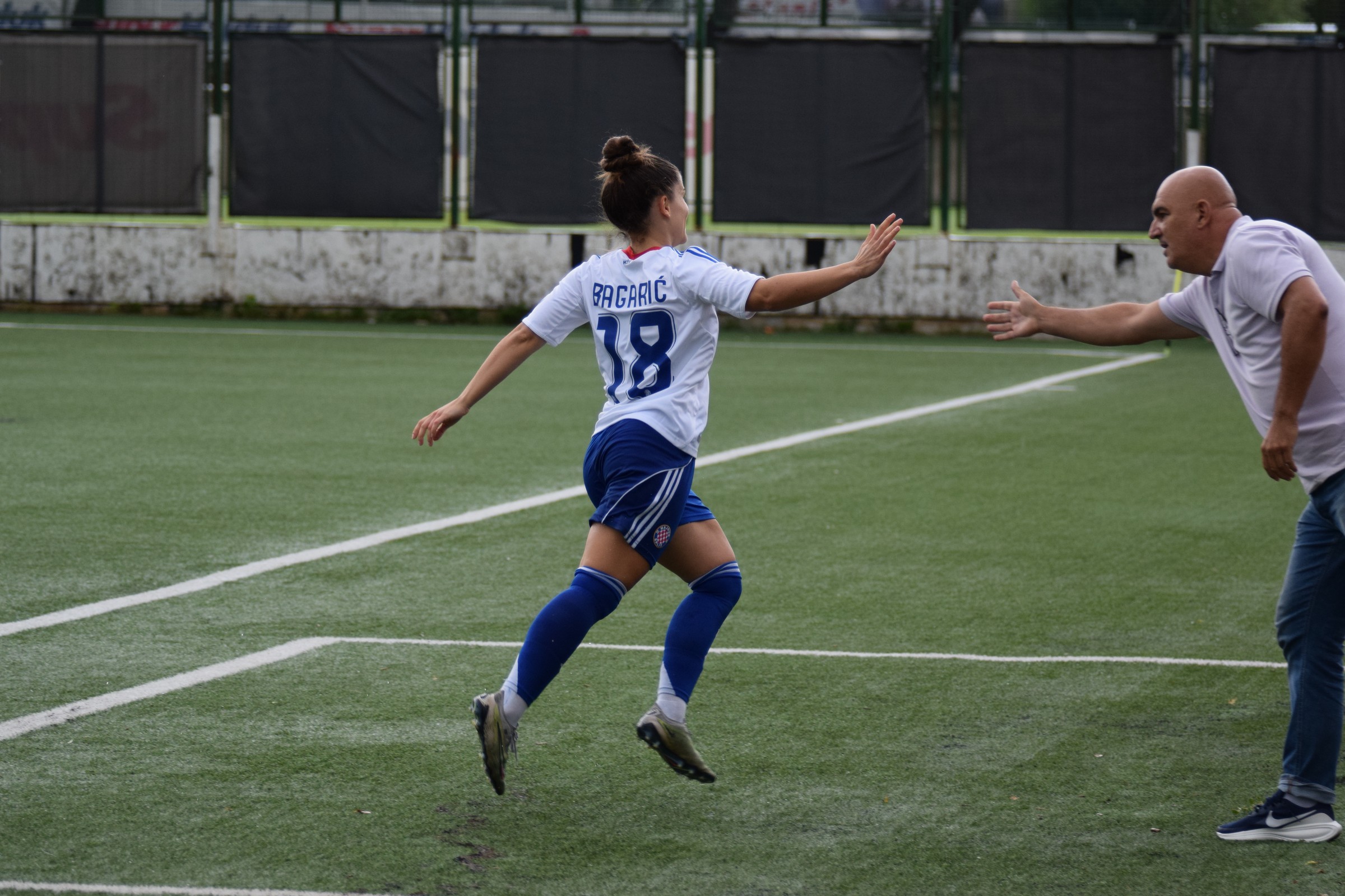 Tara Tkalčec je dobila povratnu loptu, ali je njeno oklijevanje od pola sekunde dalo priliku Janji Čanjevac da je jako pritisne i klizećim startom joj izbije loptu koja dolazi do Andree Grebenar, a koja ju odmah šalje do Branke Bagarić pri sredini, taman malo izvan kaznenog prostora, potez lijepo, potez desno, namještanje na udarac, i booom … lopta ide u rašlje i to je 1 : 0 za Hajduk.