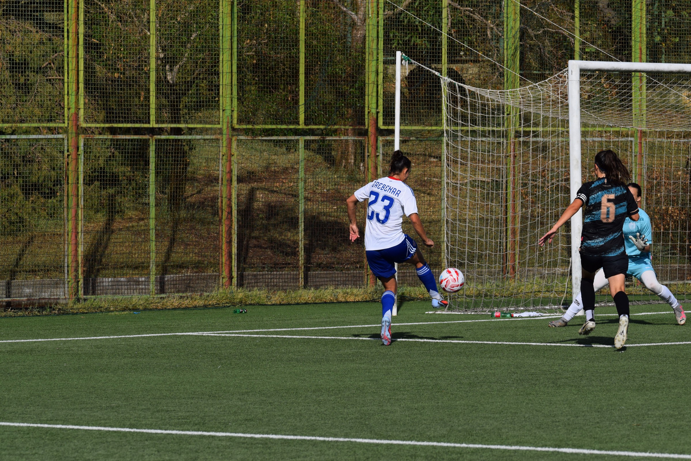 I onda, dok se čekao kraj poluvremena, Andrea Grebenar dobija loptu u for, jureći ulazi u kazneni prostor Međimurja, vara golmanicu lobom, ali njen udarac završava na gredi, odbijenu loptu prihvaća Barbara Živković i dodaje je do kapetanice Bakalar, koja je silovitim udarcem šalje u mrežu za vodstvo Hajduka 4 : 0.