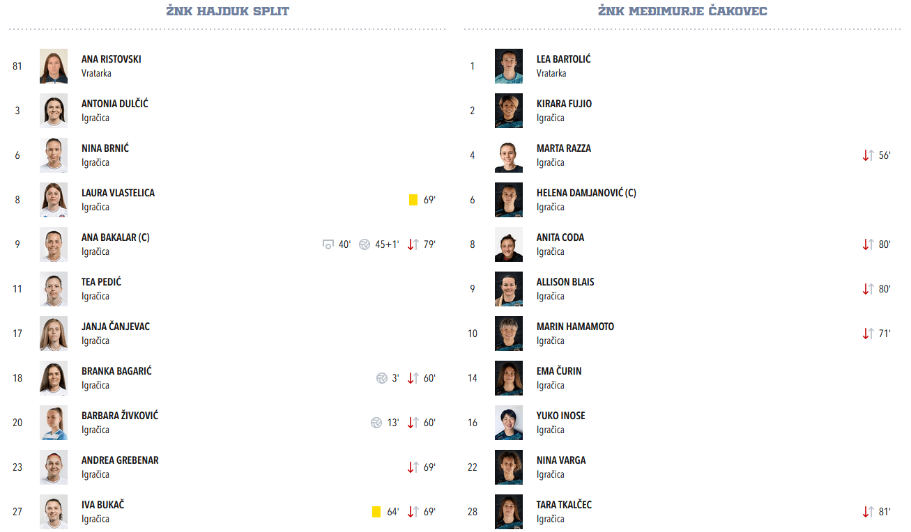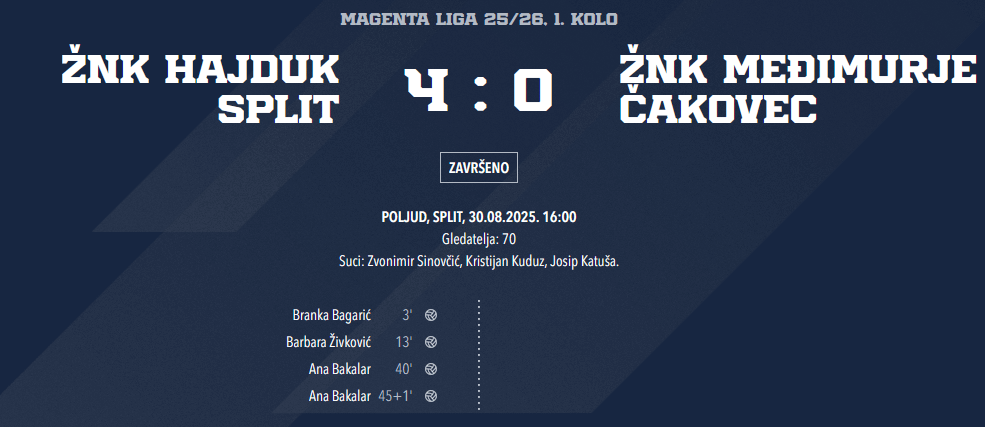 Nije da igračice Međimurja nisu probale nešto promijeniti u drugom poluvremenu, ali ovakav Hajduk je danas za njih bio prejak i može se reći da ni u drugom poluvremenu nisu uspjele stvoriti neku izgledniju priliku.