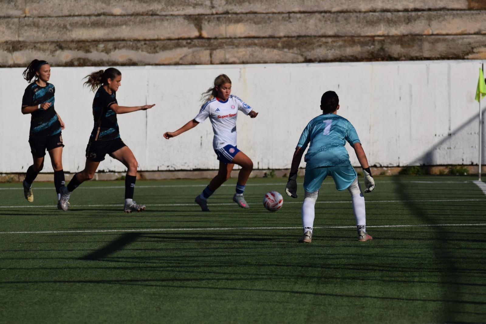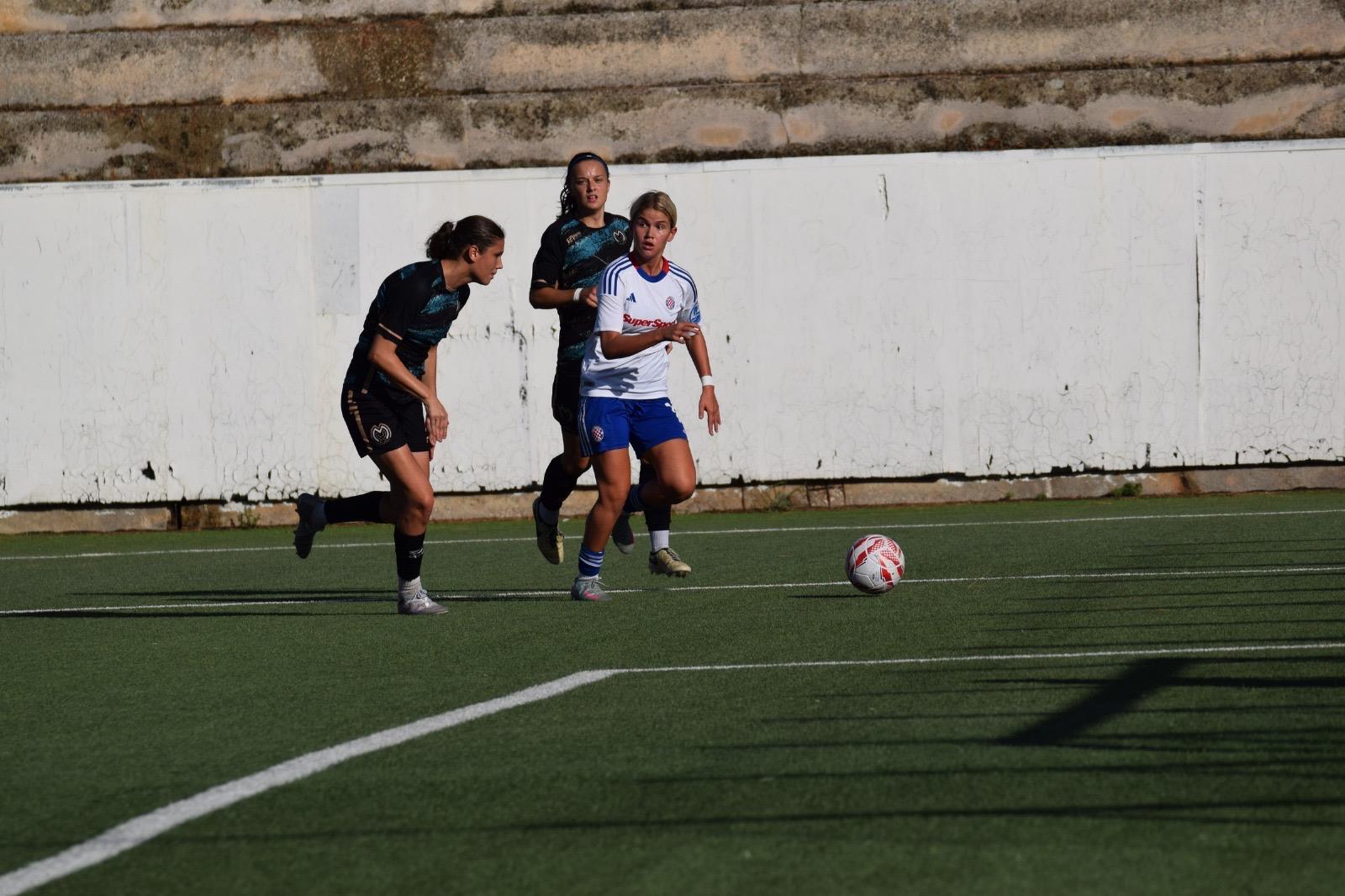 Kao osice su navalile igračice Hajduka od samog početka, stvarajući pritisak po cijelom terenu na ekipu Međimurja, koja se mučila iznijeti loptu iz svoje polovice, i već u 3. minuti taj pritisak je urodio plodom.