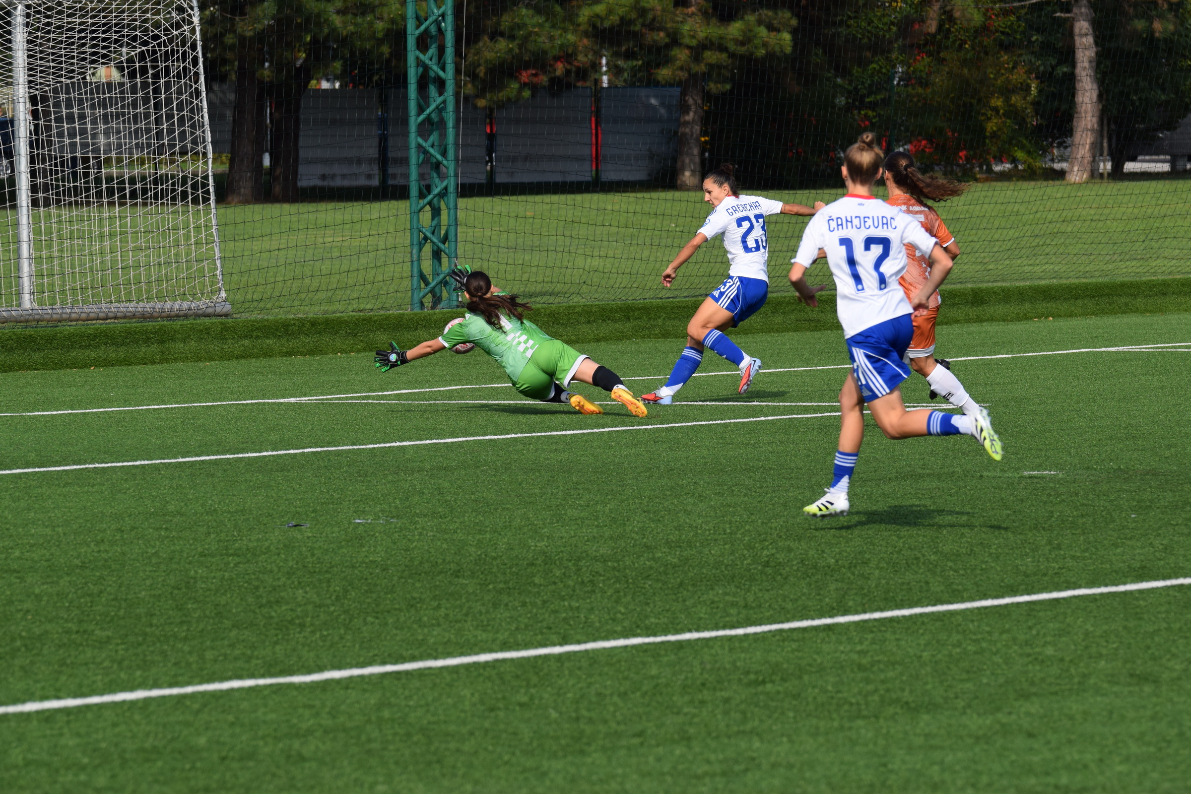 Zbog toga sam propustio prvih 5-6 minuta drugog poluvremena, u kojem me je u jednom trenutku pretrgnuo pljesak tribina … “a faaak, nije valjda Agram dao gol” … ali nije, već je Ana Ristovski vrhunski obranila odličan udarac Jasne Đoković … zaustavila loptu na crti i nema gola 😎.