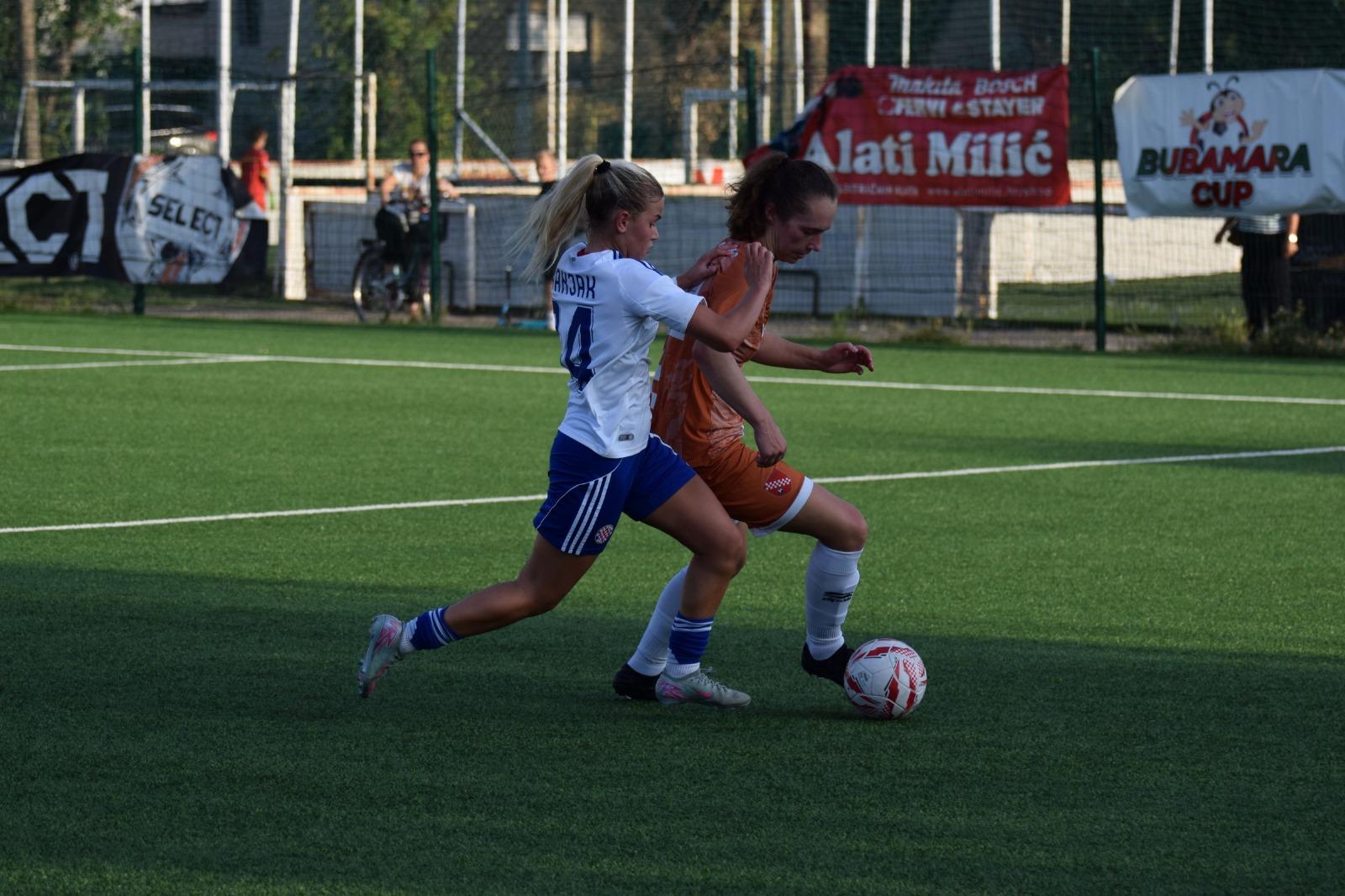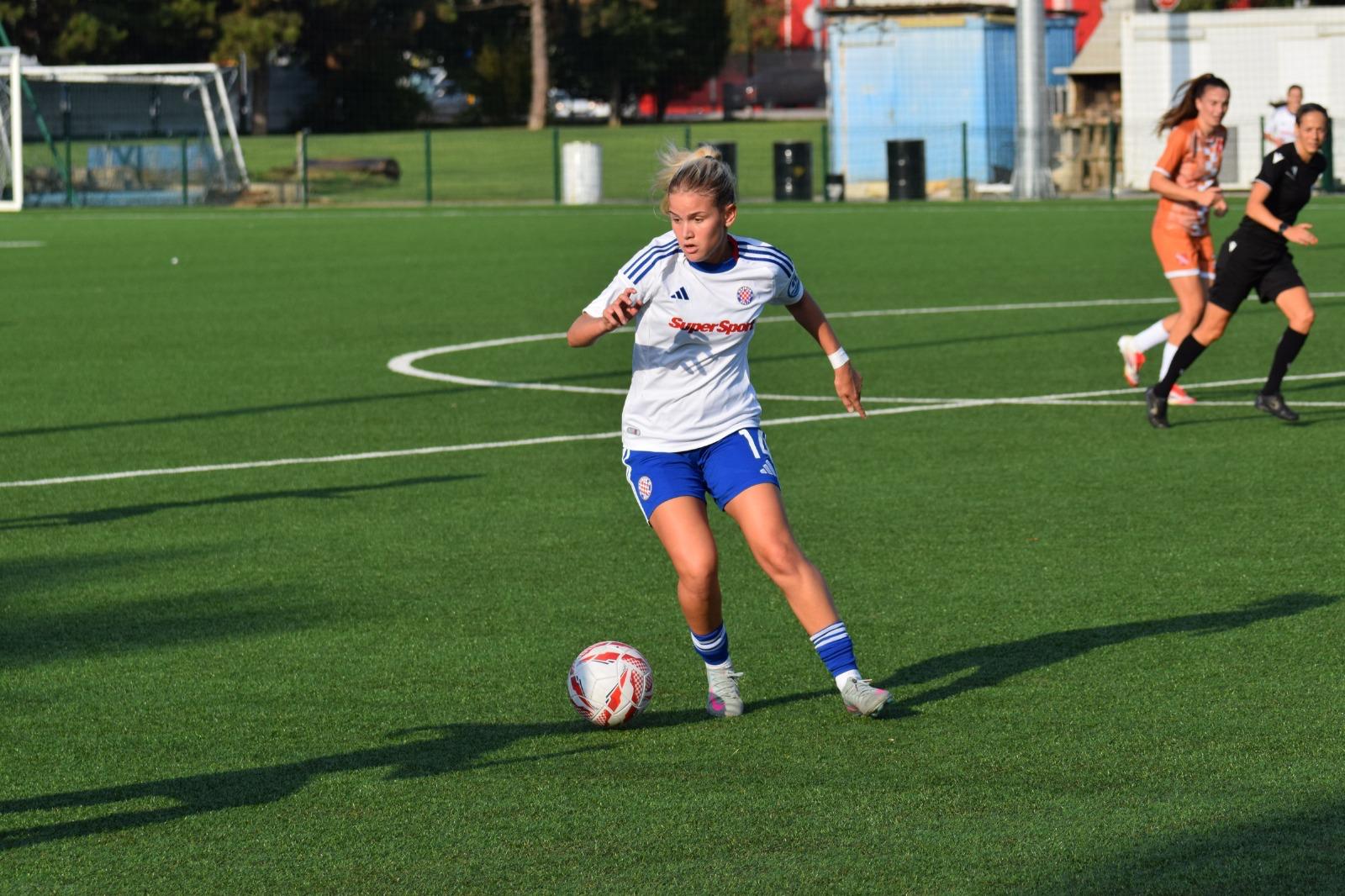 Ono što fascinira je da su usprkos tome, Hajdučice uspjele podići svoju igru na još višu razinu, i na tu agresiju i presing nadodati i vrlo kvalitetno kombiniranje i dodavanje u napadačkoj formaciji, čime su od početka stvarale rusvaj u obrani Agrama.