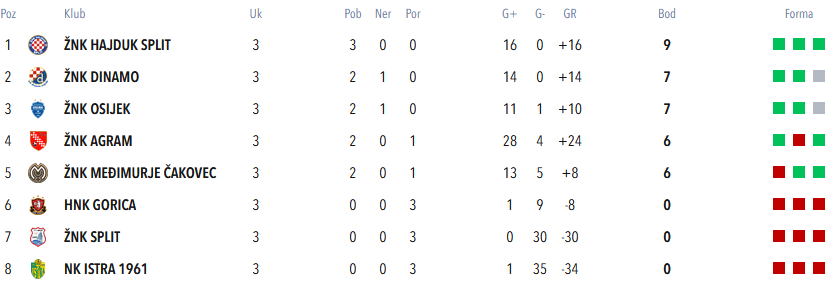 Ono što je zanimljivo je da nakon ta dva završna derbija s Osijekom i Dinamom, Hajduk odmah čekaju iduća dva – gostovanje kod Međimurja u 8. kola pa domaćinstvo Agramu u 9. kolu, i nakon fenomenalnog početka Hajdučica u prvenstvu, te četiri utakmice, od 6. do 9. kola, će biti ključne za određivanje početnih pozicija u Ligi za prvaka.