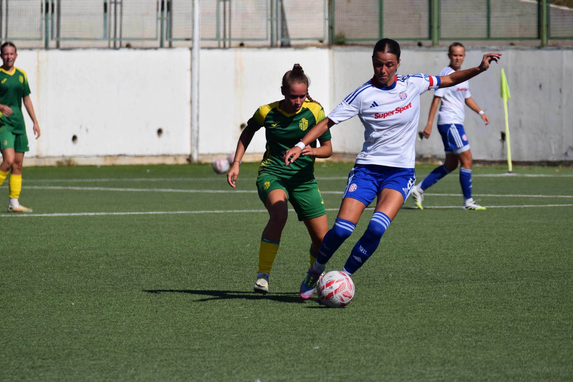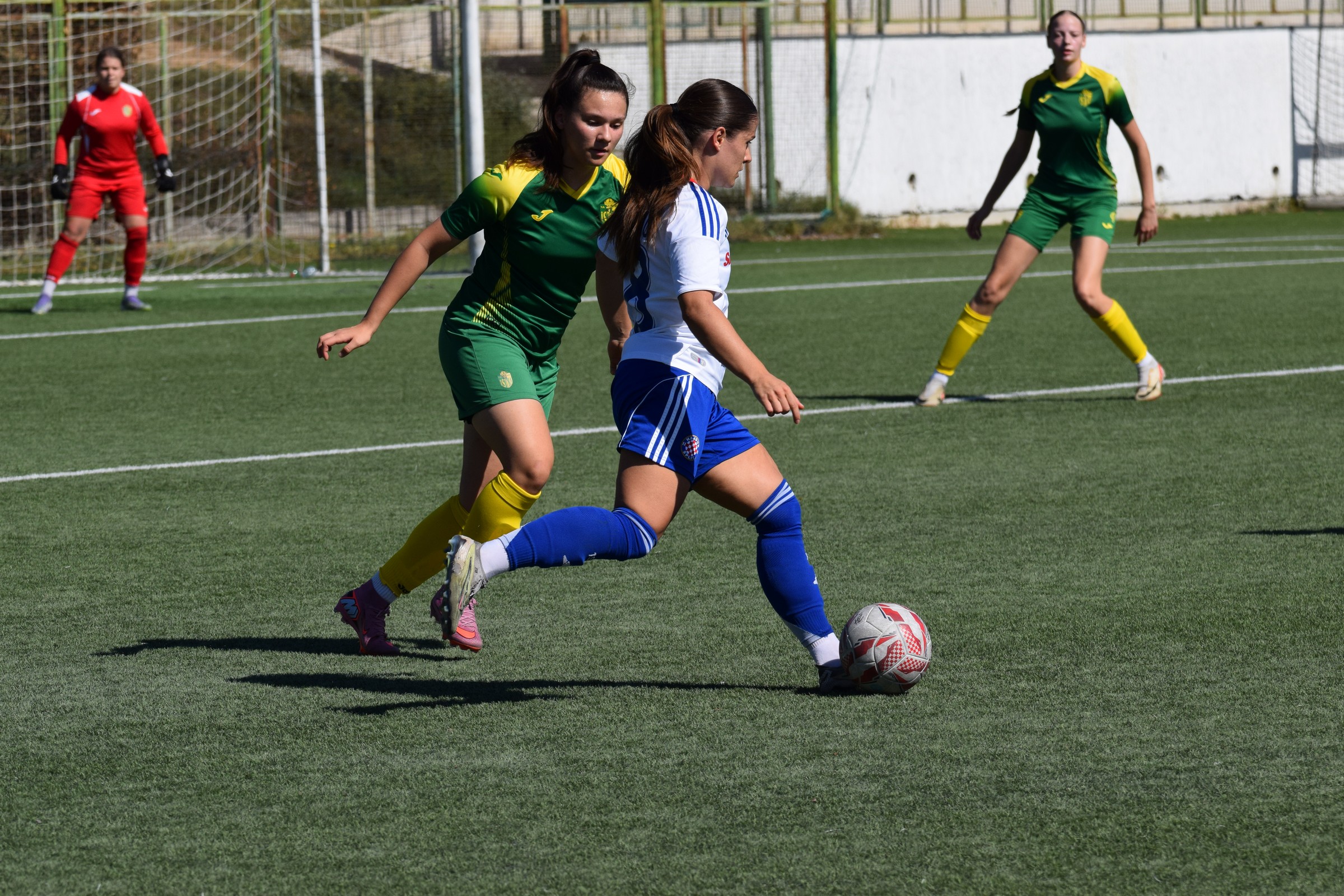 Ali, nakon te dvije promašene prilike, igra Hajdučica se malo izjalovila, igračice Istre su se maksimalno trudile i agresivno pritiskale svoje protivnice već na 40 metara i isteklo je 45 minuta prvog poluvremena, a rezultat je još uvijek bio 0 : 0.