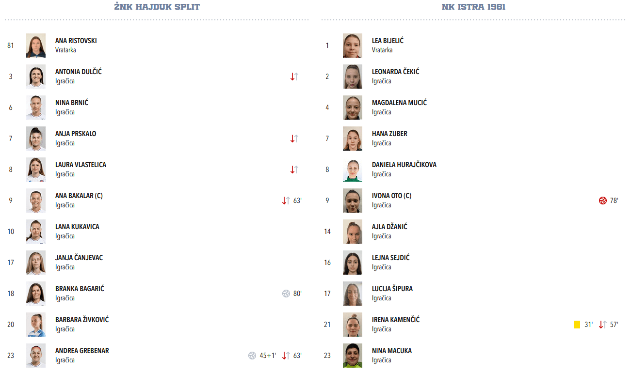 Izašle su Dulčić, Vlastelica i Prskalo a ušle Luana, Blaška i Sara Herceg, igra Hajdučica je od prve minute dobila na agresivnosti i u drugom poluvremenu ekipa Hajduka je izgledala puno, puno bolje.