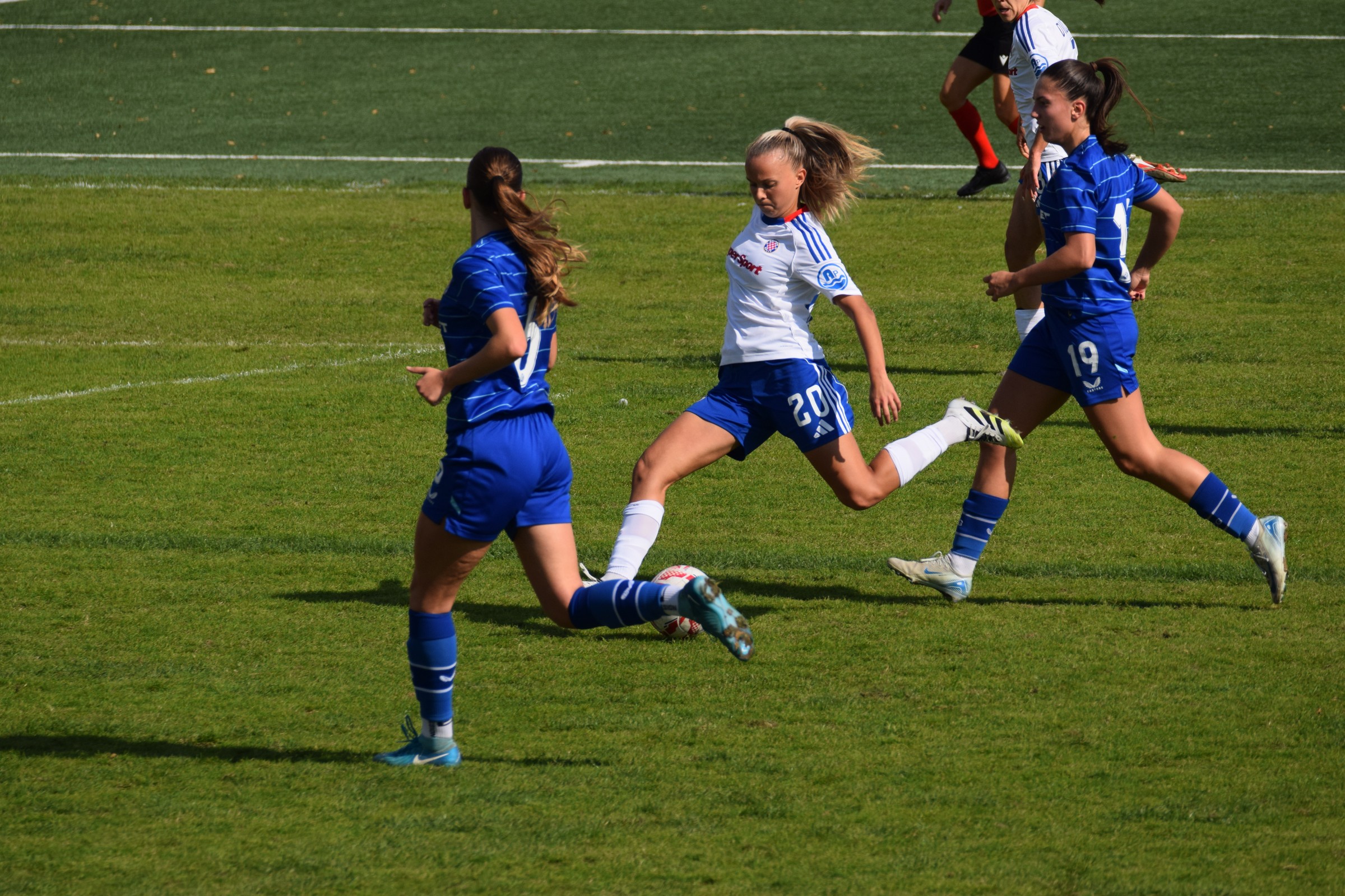 A što je u neku ruku bilo i normalno – s ulaskom Pedić (koja je ušla zajedno s Luanom) se Lana Kukavica prebacila s pozicije stopera u vezni red, kapetanica Ana Bakalar se također počela ofenzivnije postavljati i s odličnom Barbarom Živković desno i Janjom Čanjevac lijevo igra Hajduka se postavila tako da je Luana u njoj imala premalo prilike za sudjelovanje.