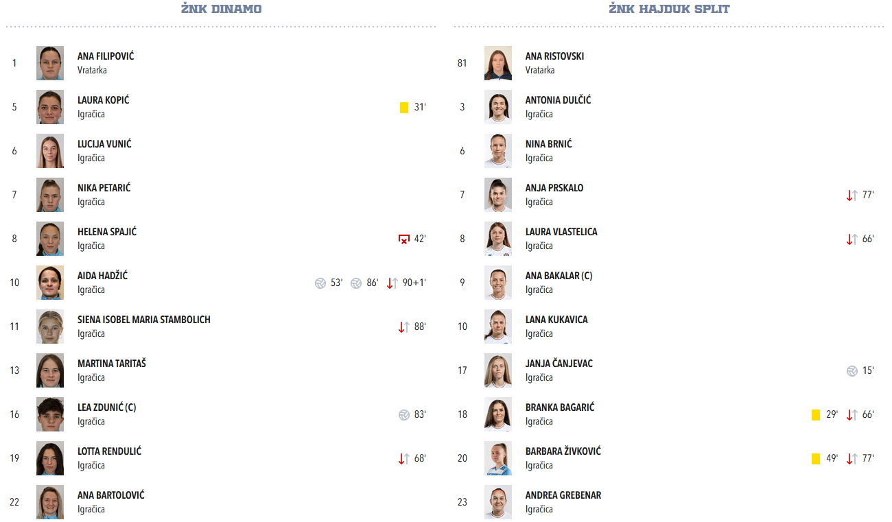 Uglavnom, treći gol Dinama je podosta demoralizirao Hajdučice, i dok su se trgnule već se ušlo u sudačku nadoknadu, u kojoj je u zadnjim trenucima utakmice nakon lijepog prodora Andree Grebenar po desnoj strani Gabrijela Prkačin s pet metara zabila za konačnih 3 : 2.