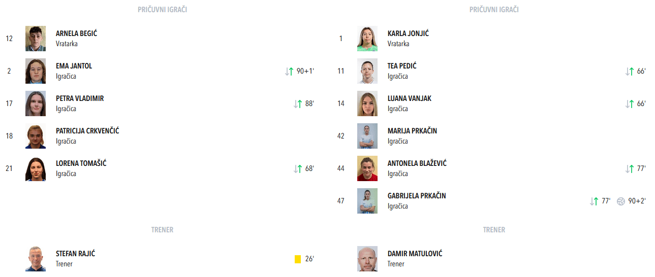Lu je zamijenila Branku Bagarić koja je odlično krenula u utakmicu, izvela i odličan slobodni udarac koji je vratarka Dinama jedva skrenula u gredu, ali nakon toga je malo pala u igri i to nije bio doprinos kao na prethodnoj utakmici protiv Osijeka.