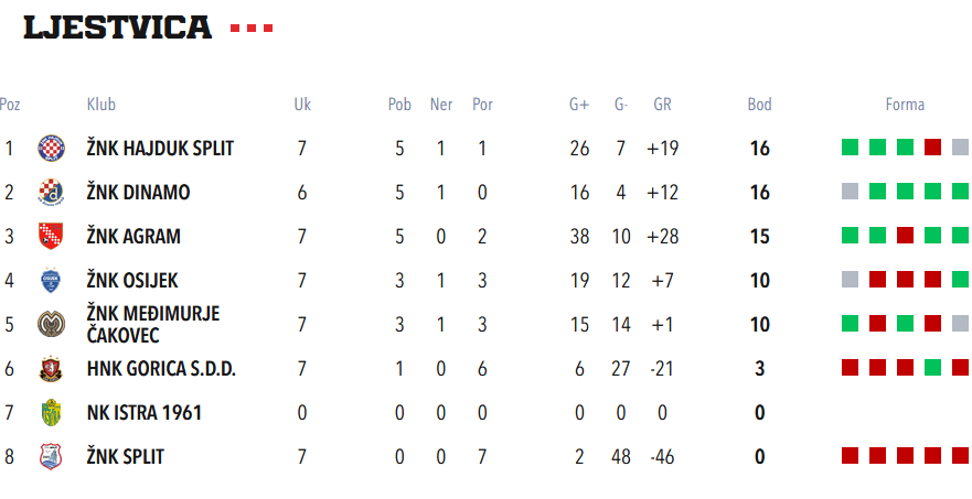 S obzirom da je sad i službeno da je NK Istra odustala od daljnjeg natjecanja, njihove utakmice su se izbrisale, pa je Hajduk s osvojenim bodom, i potpomognut činjenicom da Dinamo nije u ovom kolu odigrao svoju utakmicu s Istrom, opet zasjeo na prvo mjesto (ali, s utakmicom više od Dinama!).