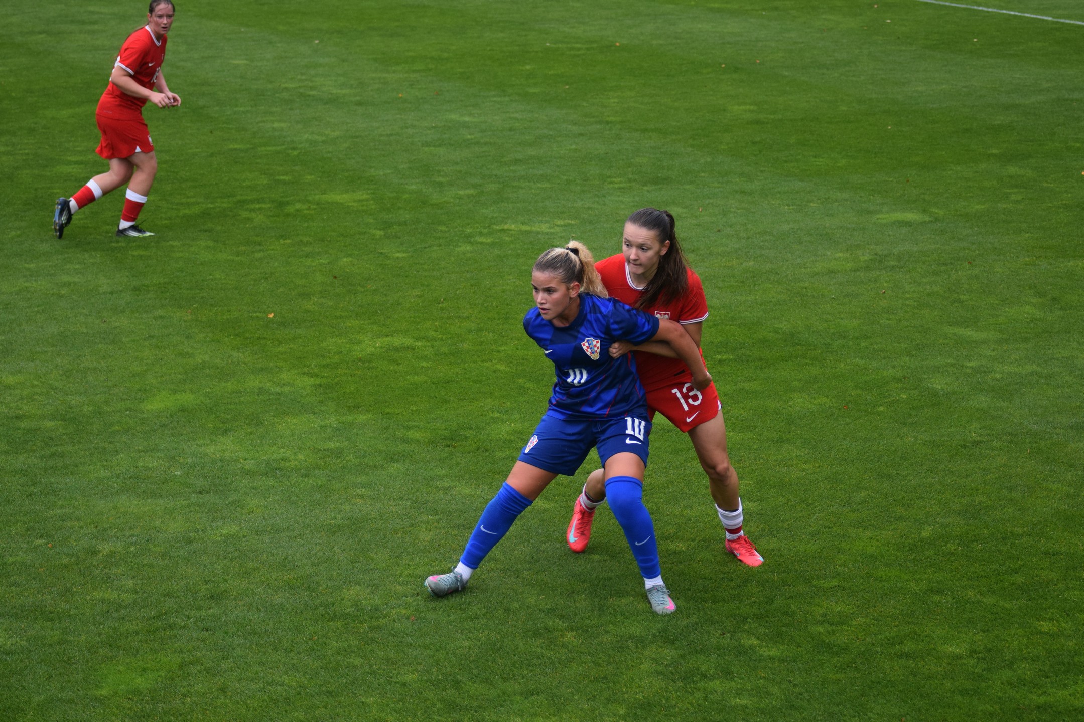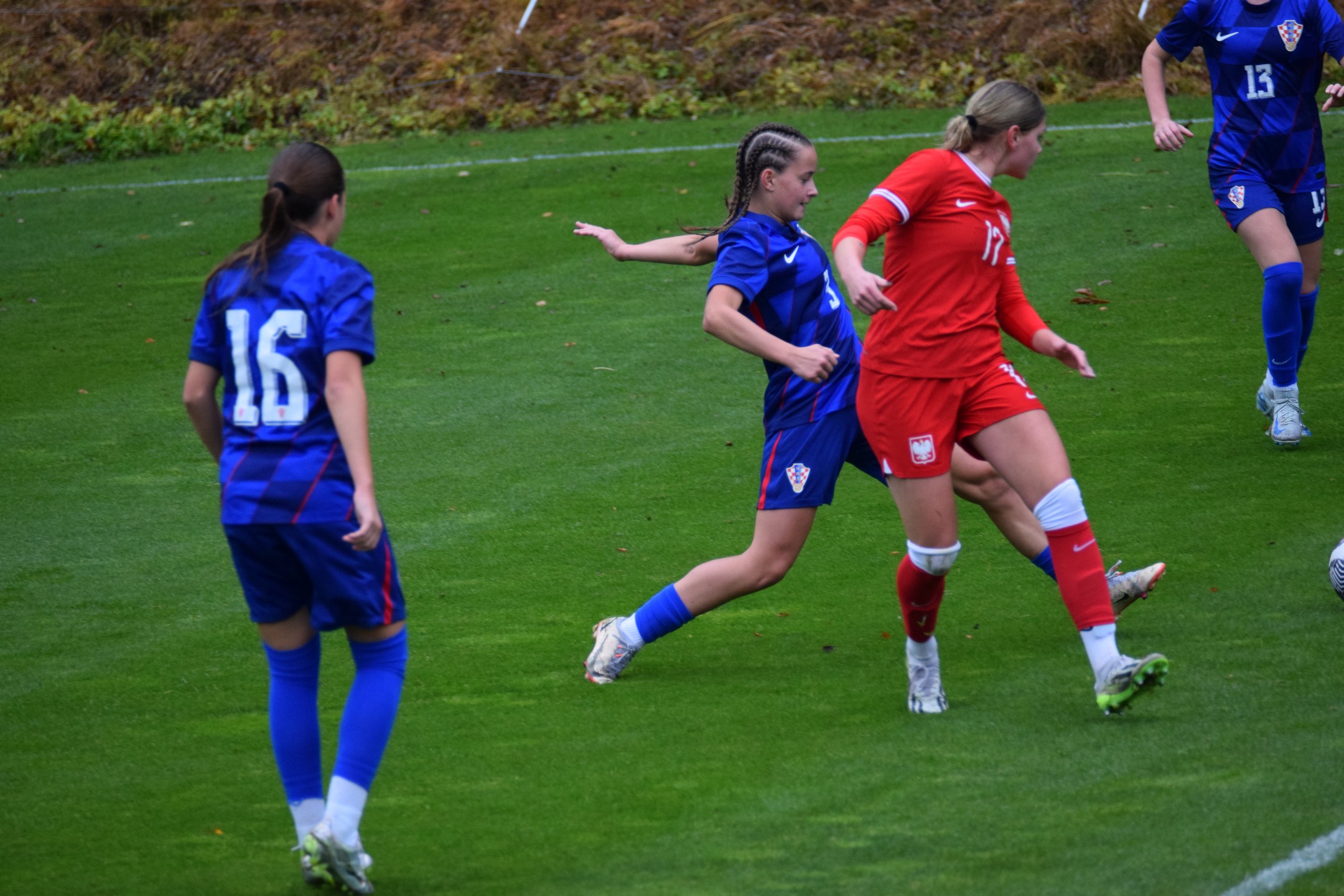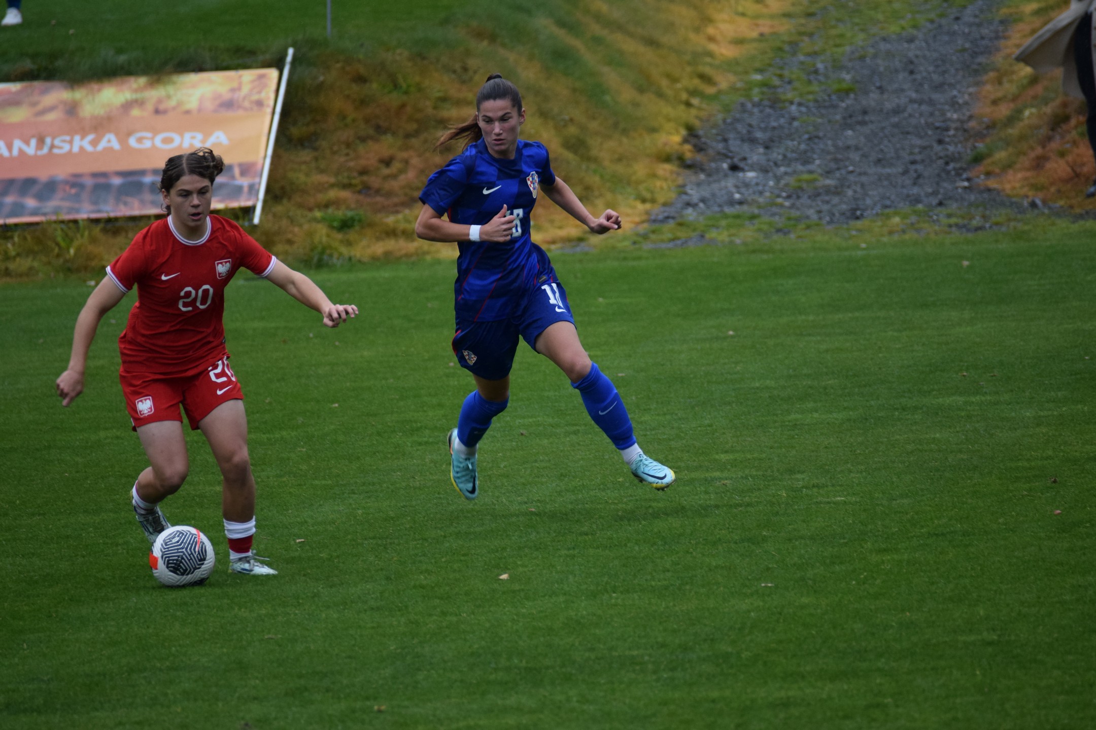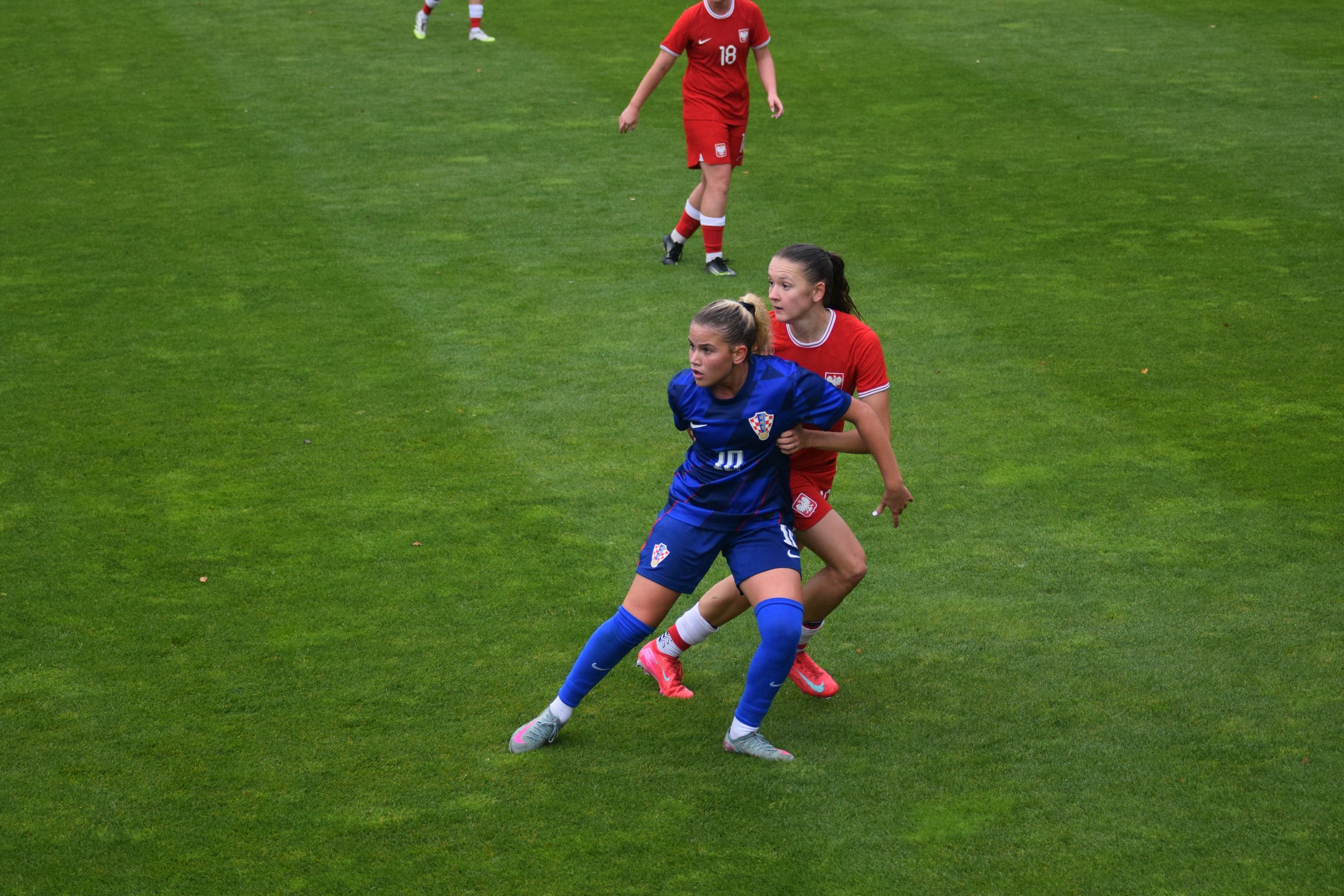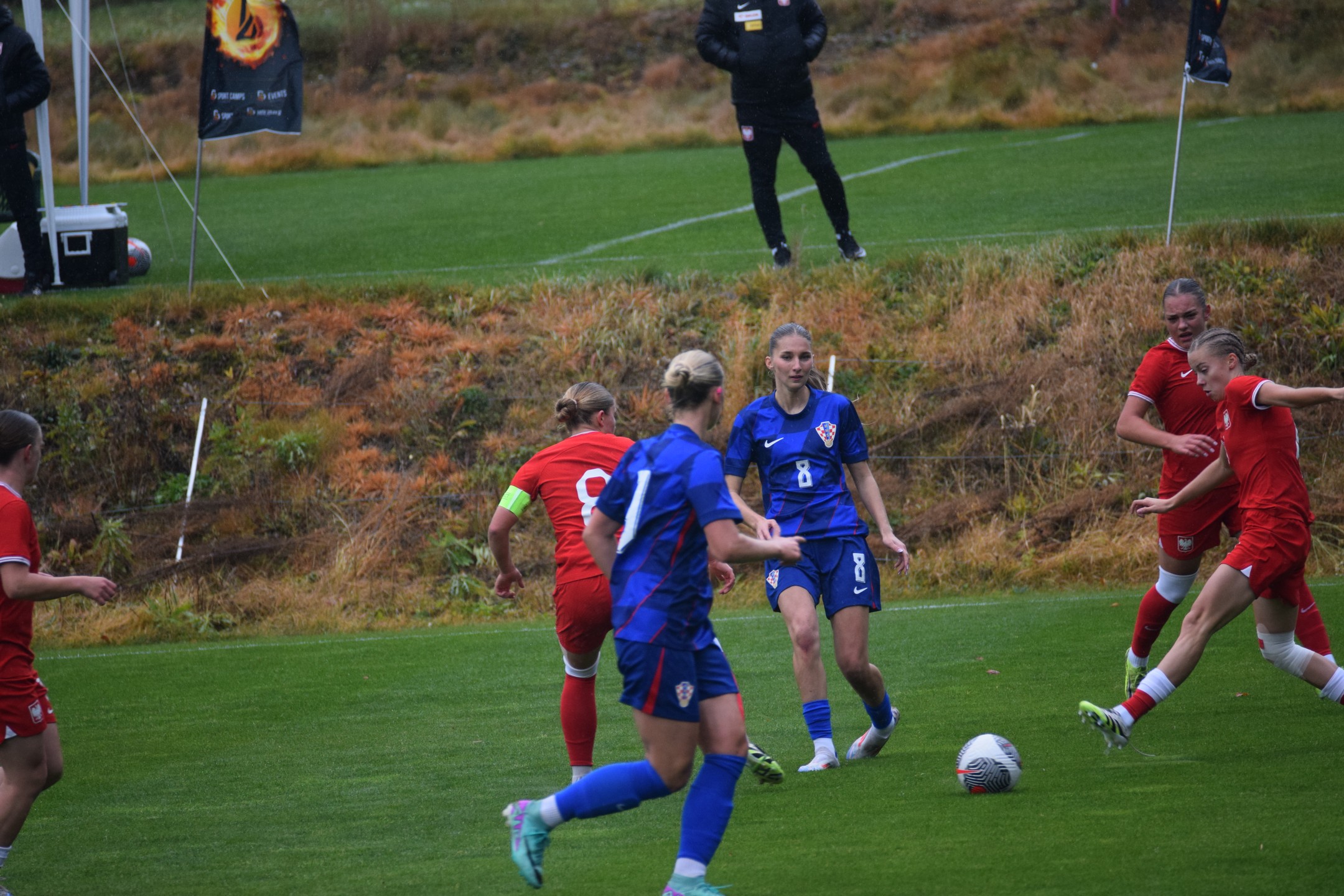 Kad bi Poljakinje i provukle loptu do sredine, što su, zahvaljujući svojoj kvaliteti često tijekom utakmice i uspijevale napraviti, čekale su ih neumorne Emma Babić i Ivona Oto, a kojima su leđa čuvala tri “buldoga” ❤️ – Mia Pestić lijevo, Valentina Akrap u sredini i Mia Gavrić (koju je nakon ozljede ekstra kvalitetno zamijenila Dana Šalić) desno, sa Stelom Veseli i Lanom Ciglević na bekovskim pozicijama.