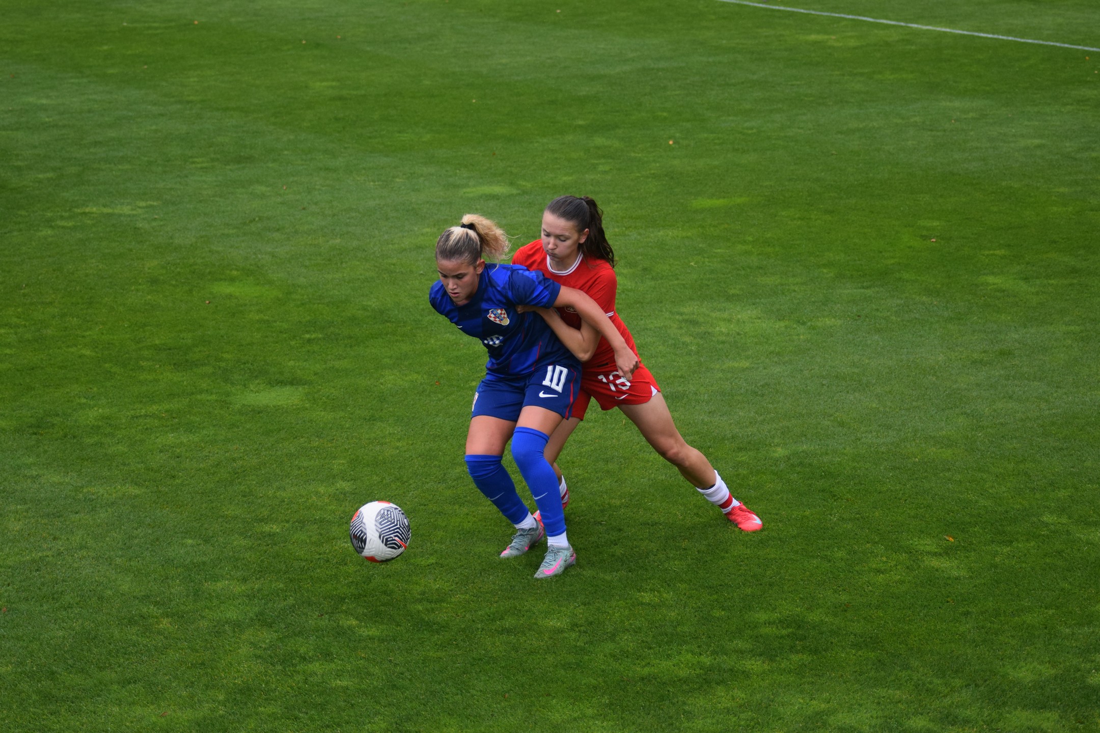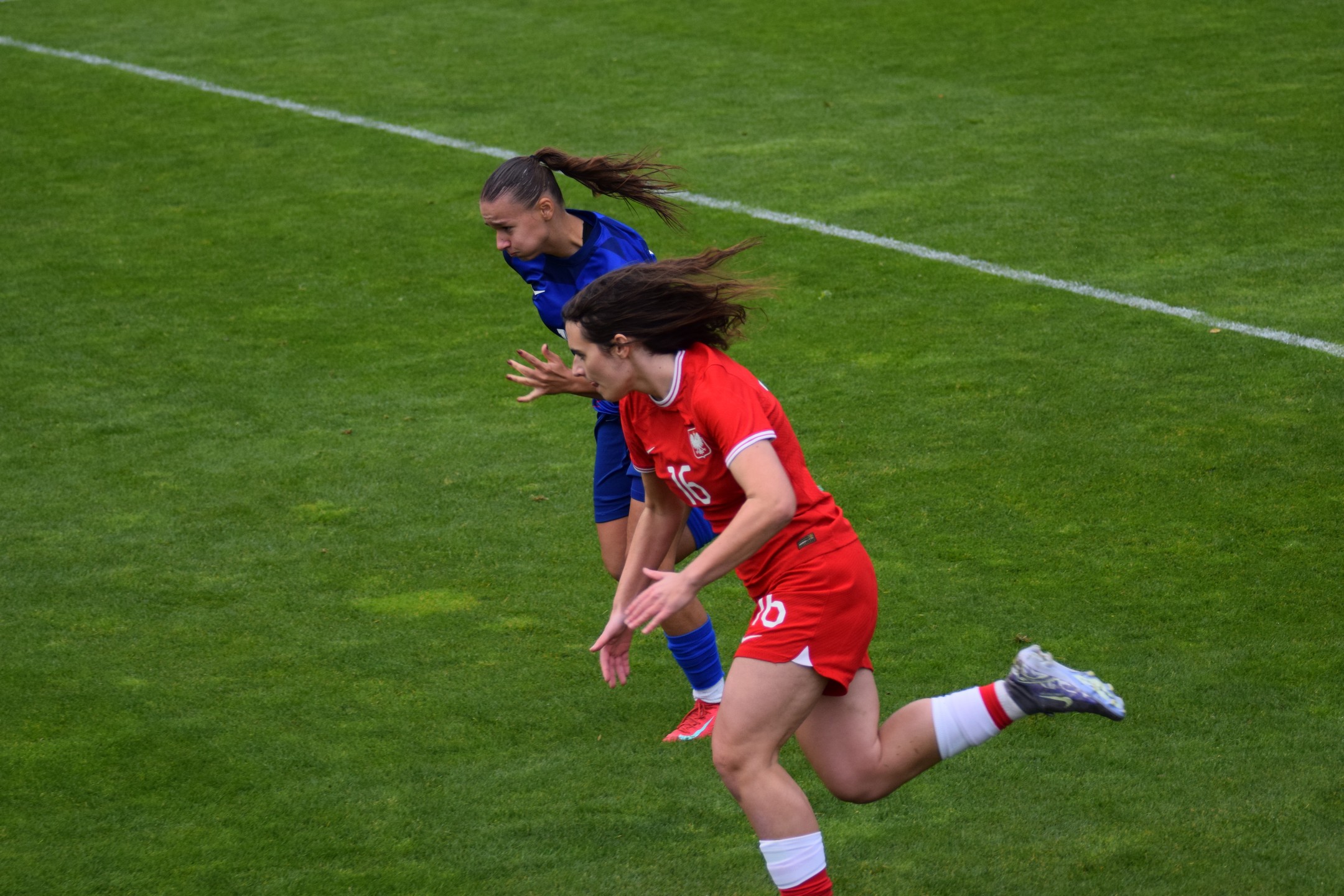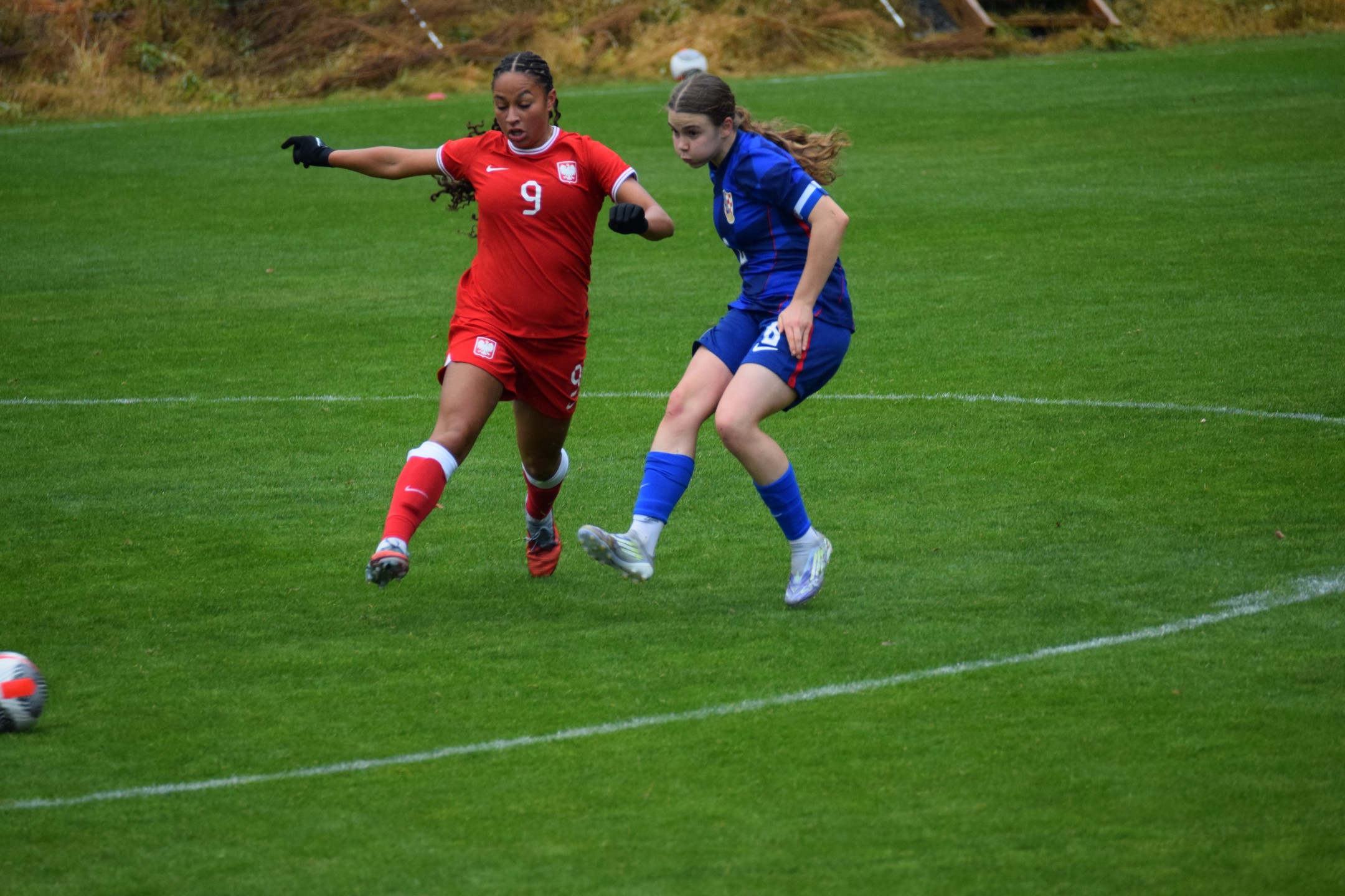 I onda stiže takva jedna lopta do Lu, ovaj put skroz na desnoj strani, a 5-10 metara od moje pozicije fotkanja 😎, i nekih 30ak metara od poljskog gola, Lu prima loptu, ali na leđima joj je već Poljakinja, druga prilazi a opcija za naprijed baš i nema … i kako se samo mala tad zagradila 💪.
