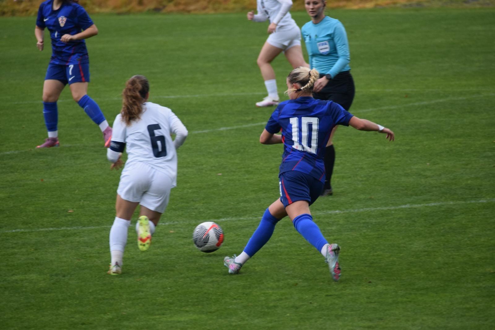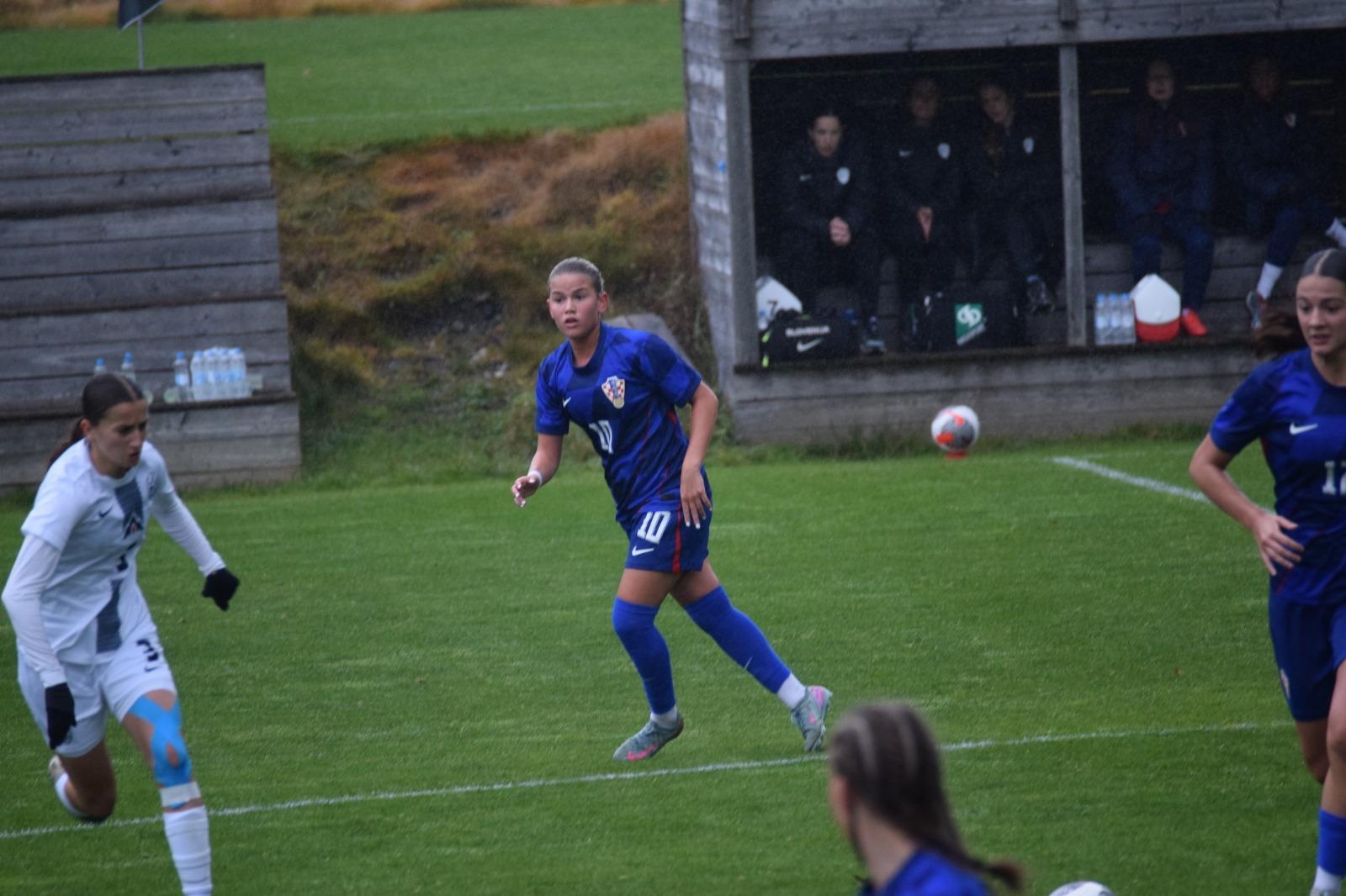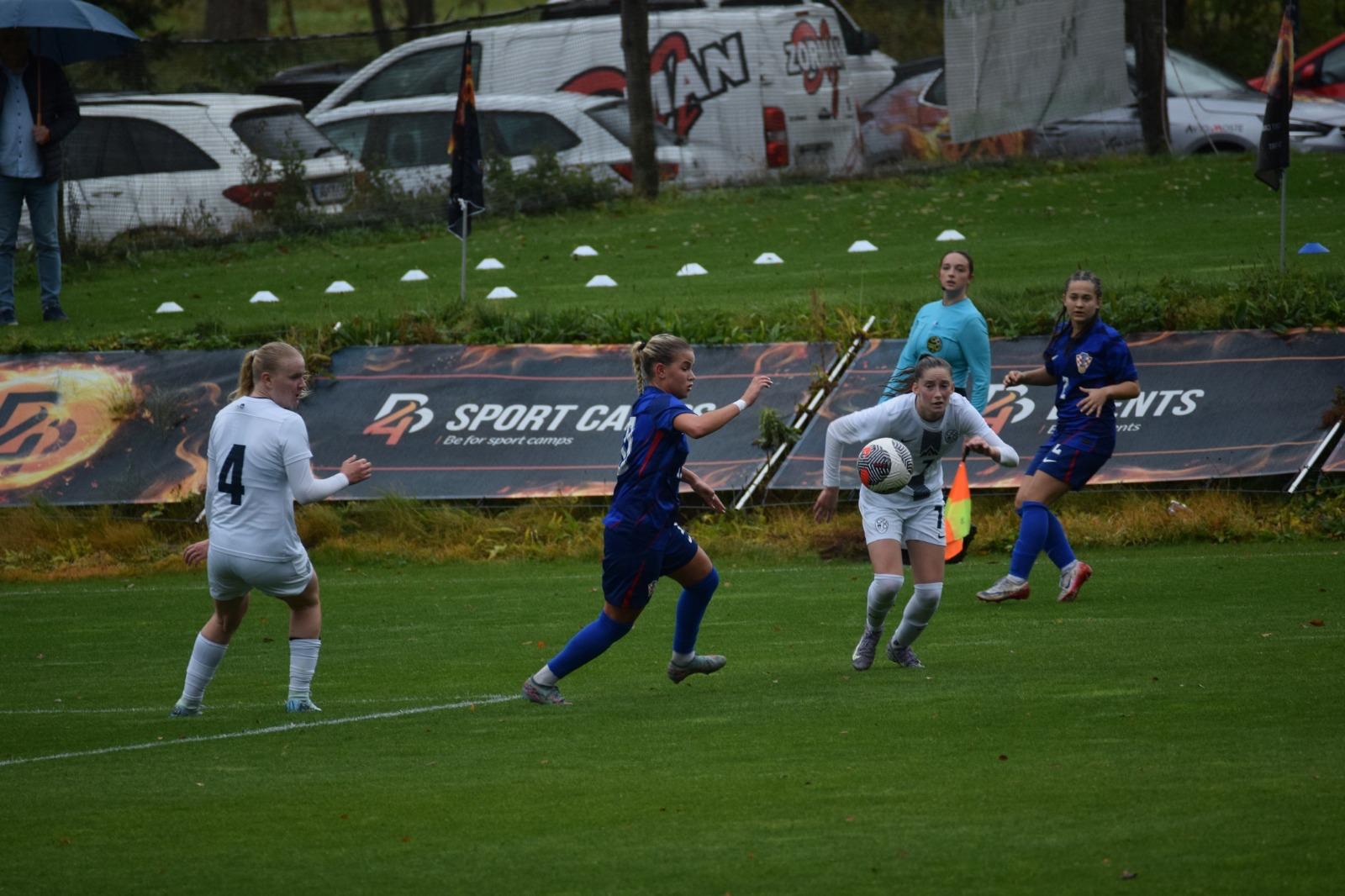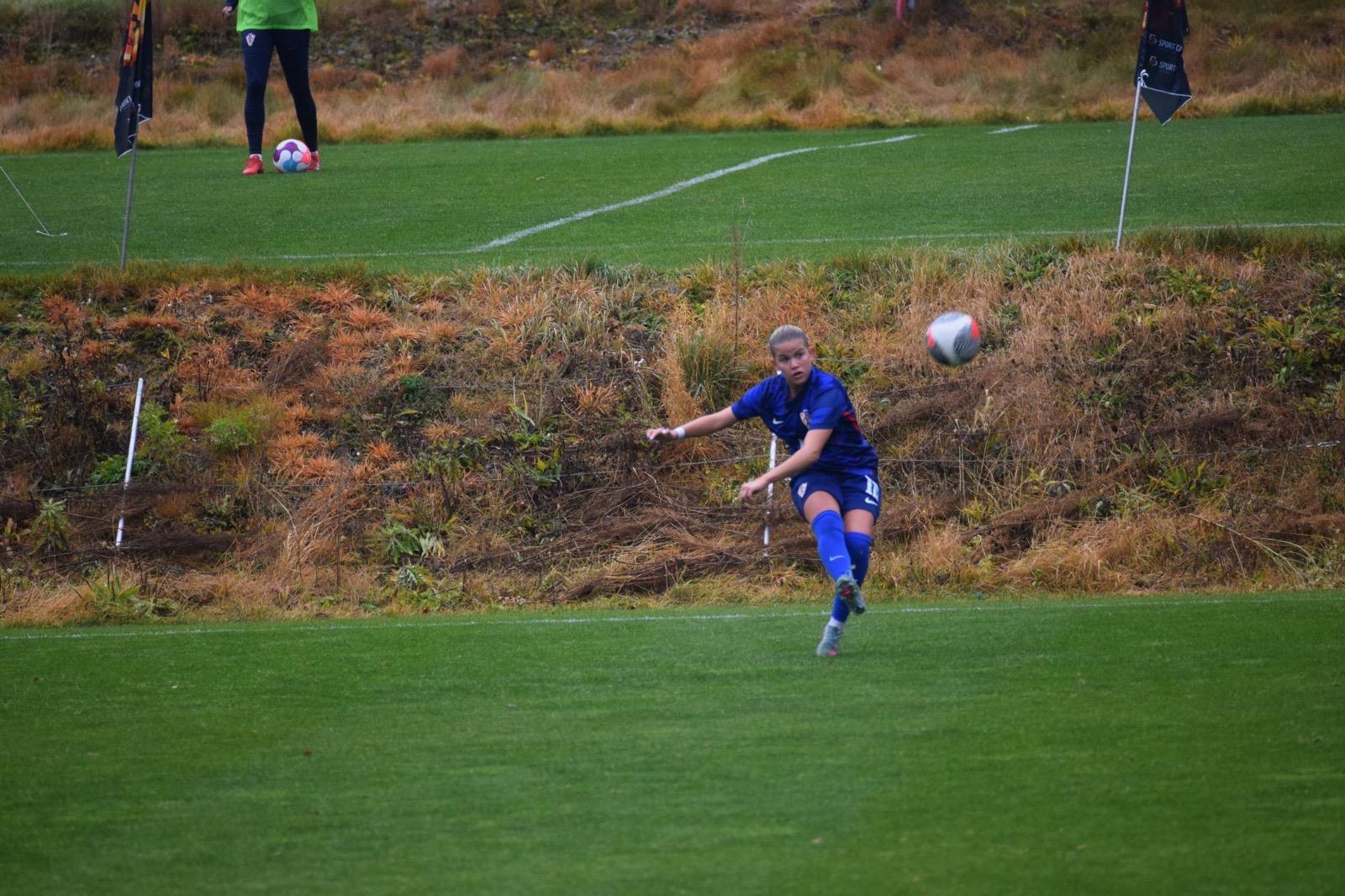 Nakon odličnog Luaninog nabačaja iz kornera, pokušaj Gabrijele Prkačin glavom je slovenska vratarka uspjela samo kratko odbiti, no Emma Babić, koja se profilira u našu glavnu golgeterku 💪, je bila spremna ko zapeta puška i loptu majstorski zakucava u mrežu za smanjenje na 2 : 1.