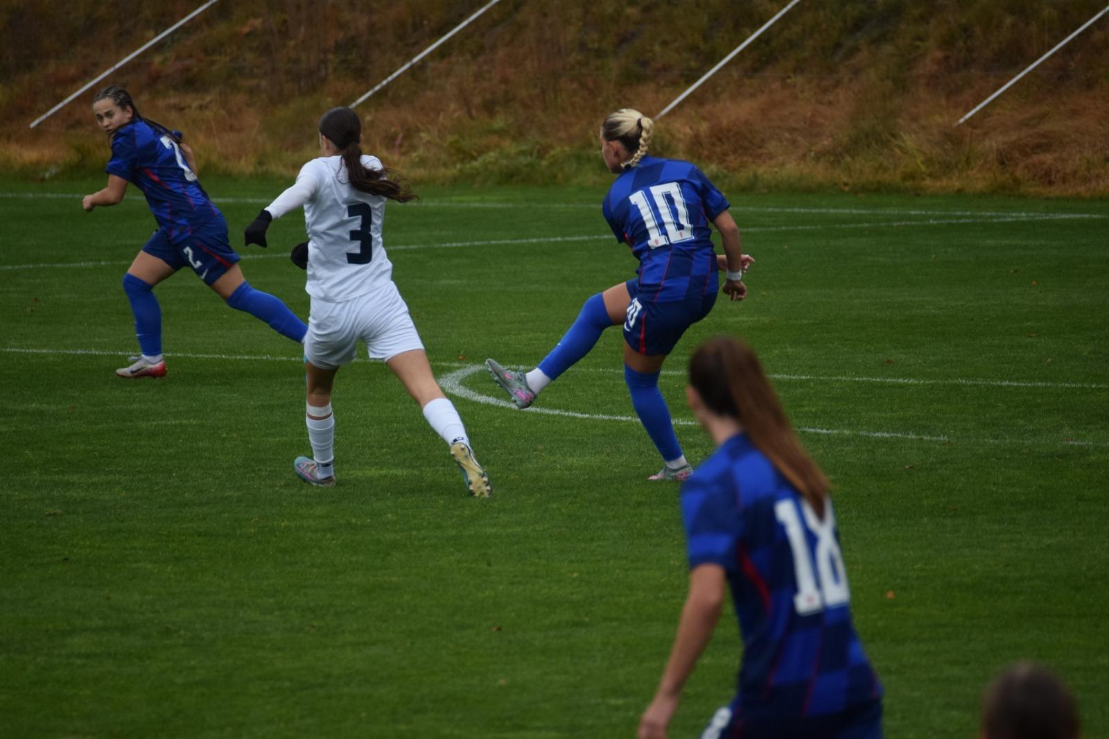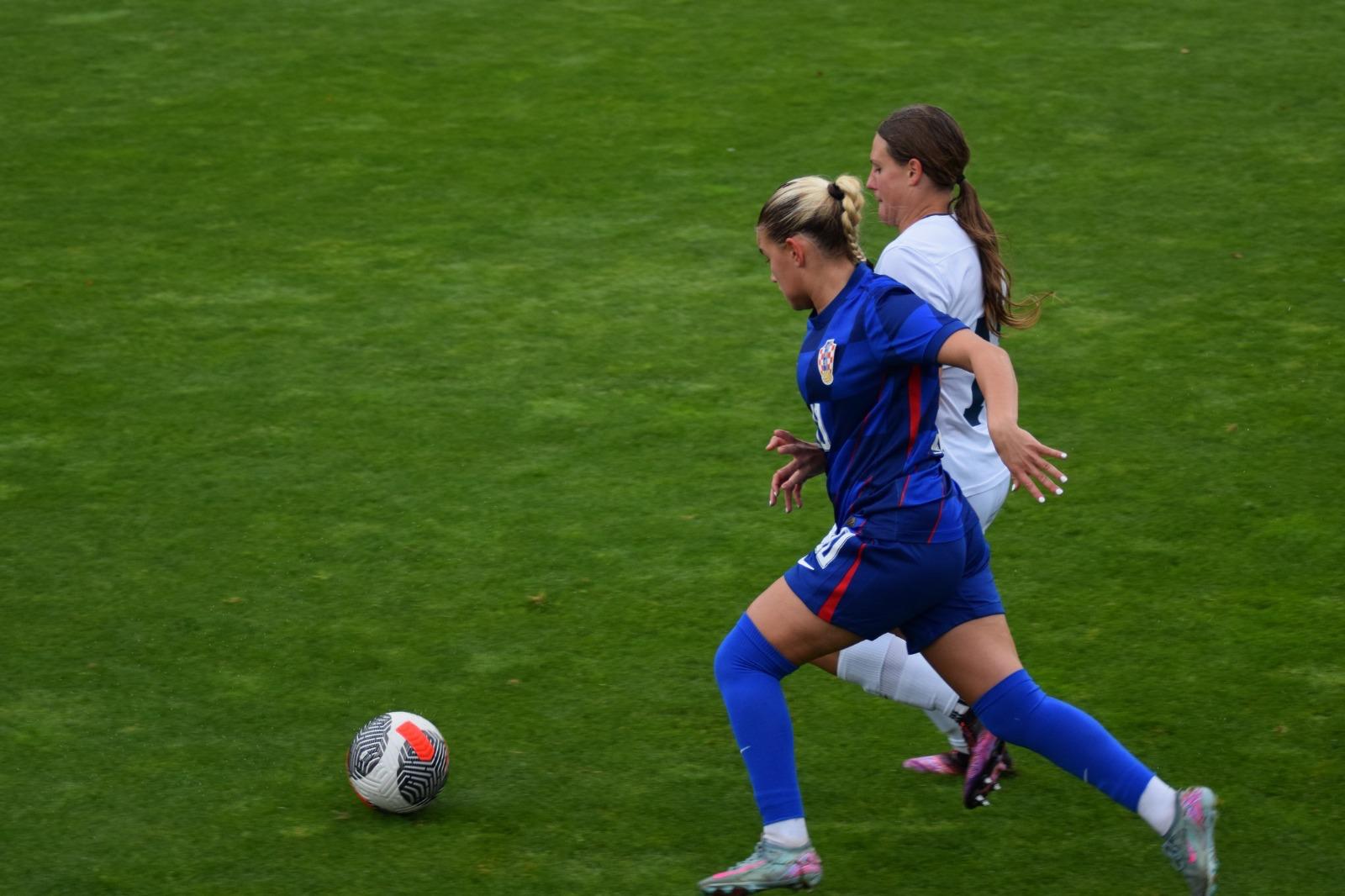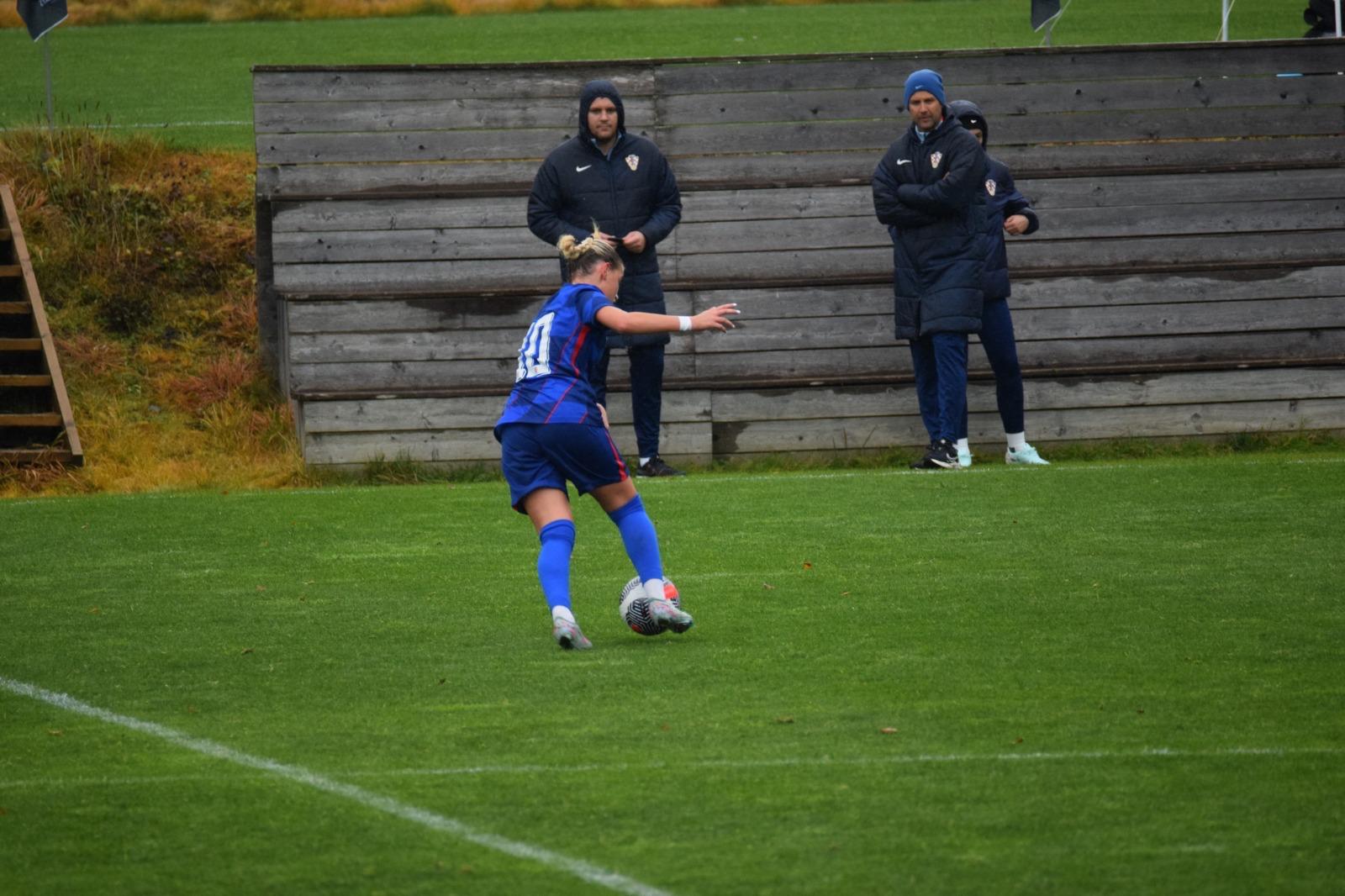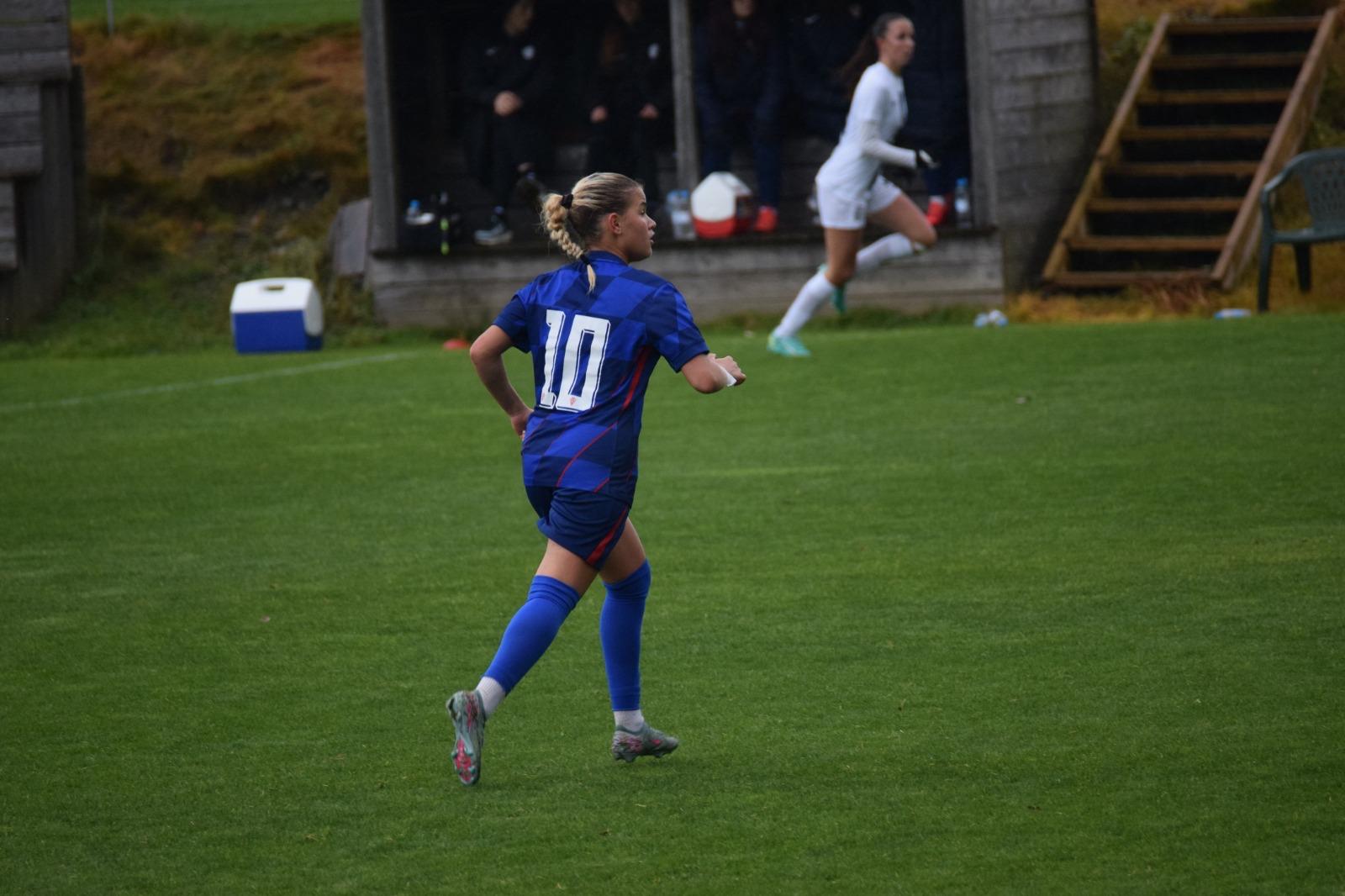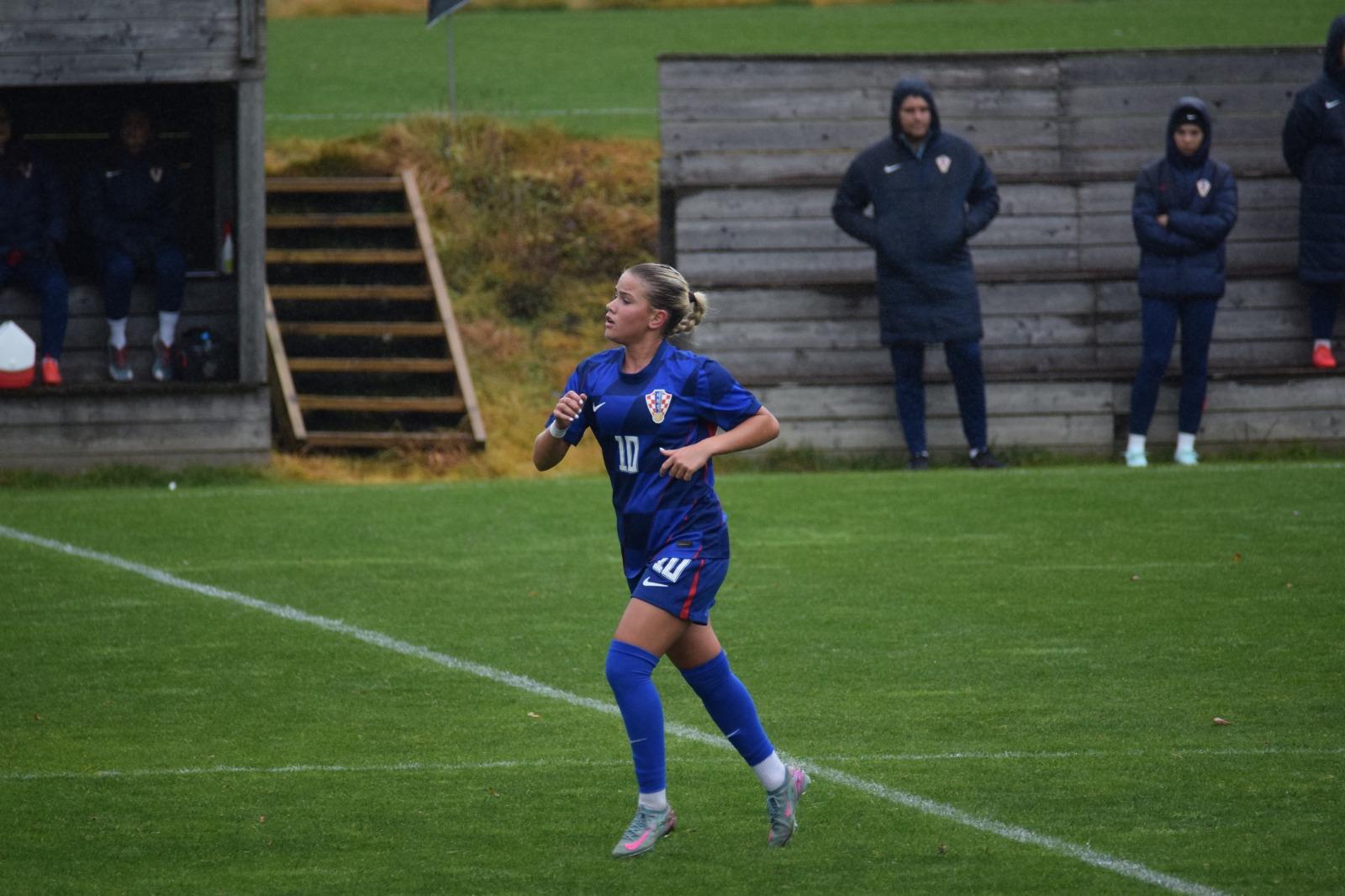 Nakon odličnog Luaninog nabačaja iz kornera, pokušaj Gabrijele Prkačin glavom je slovenska vratarka uspjela samo kratko odbiti, no Emma Babić, koja se profilira u našu glavnu golgeterku 💪, je bila spremna ko zapeta puška i loptu majstorski zakucava u mrežu za smanjenje na 2 : 1.