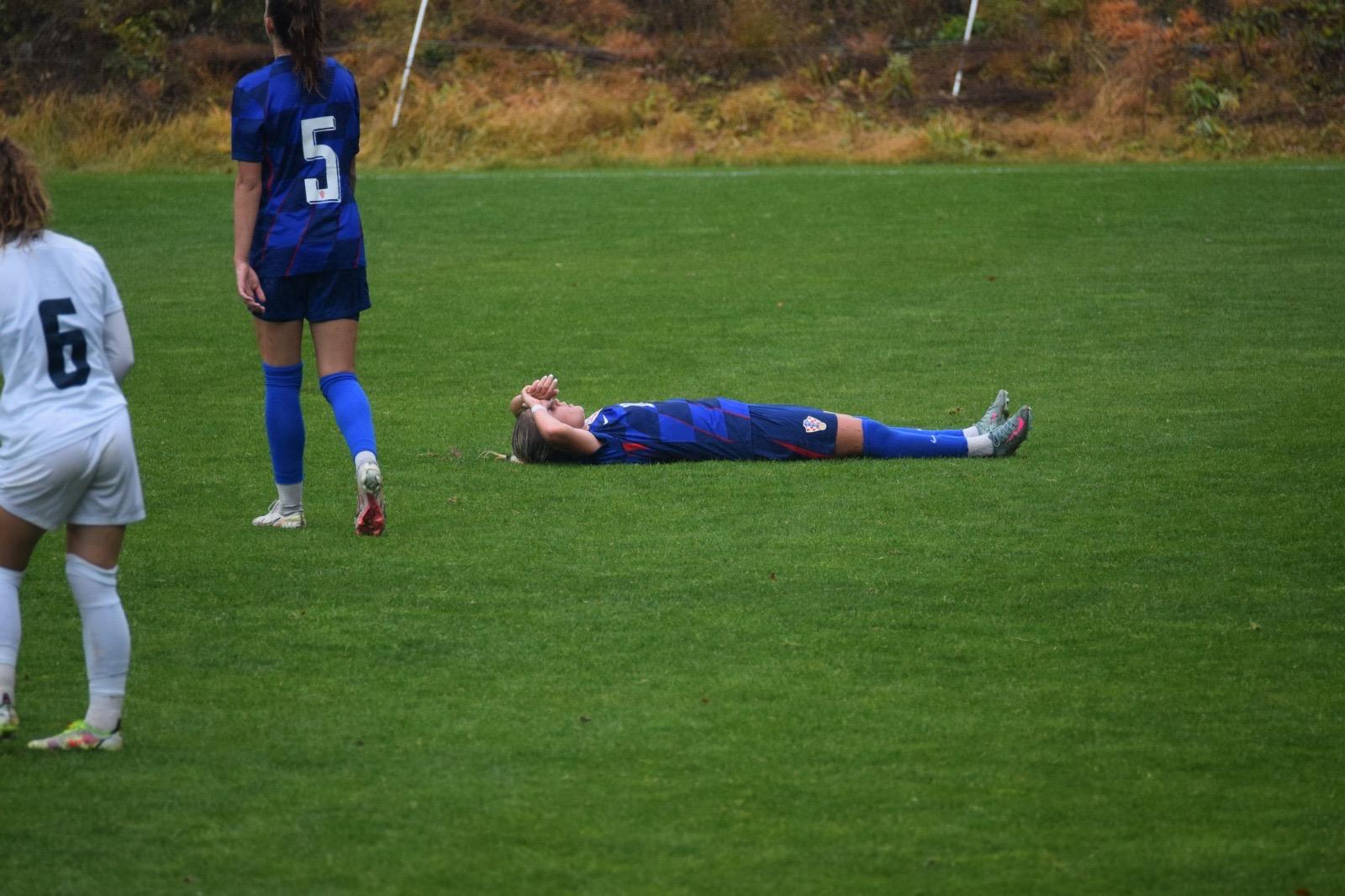 U zadnjih pet minuta smo imali nekoliko prekida u slovenskoj polovici, i nervoza na slovenskoj klupi je bila vidljiva iz konstantnog vikanja njihovog trenera s aut linije, u zadnjoj minuti je Luana srušena na samom rubu šesnaesterca, a kako jest bila stisnuta između dvije Slovenke (doduše, ja ću reći, s loptom još uvijek u svom posjedu), sutkinja nije ništa sudila i utakmica je završila rezultatom 2 : 1.