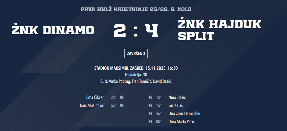 I bila je to odlična utakmica! U kojoj Dinamo nije bio loš, dapače! I u Emi Čikvar imaju pravi nebrušeni dragulj 😮 … ali su Hajdučice jednostavno bile bolje.