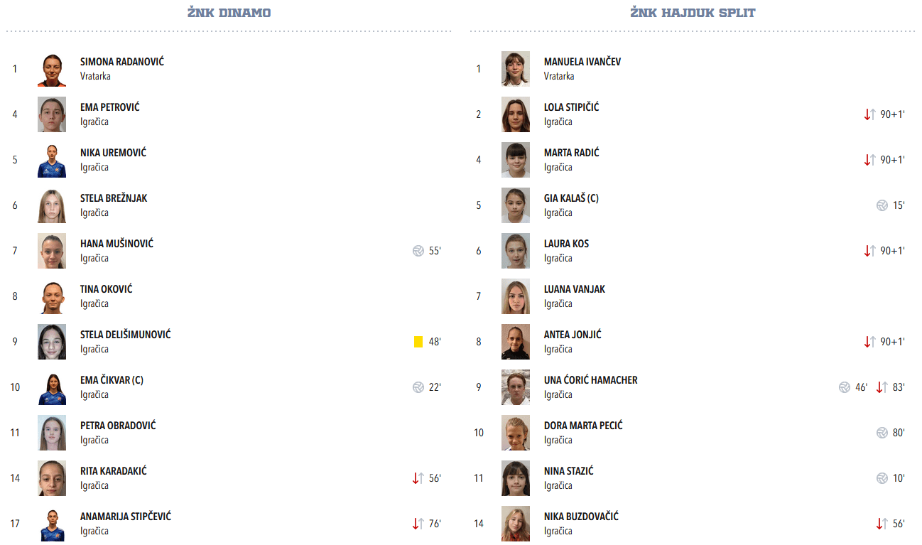 A ove godine … eeee, ove godine je Hajduk izveo “Grdiša manevar” 😂, i u svoju kadetsku ekipu za okršaj s Dinamom pozvao Luanu upomoć (koristeći standardno pravilo u WU-17 ligi da se u kadetsku ekipu može prizvati jedna igračica starijeg godišta – ove godine u WU-17 igraju godišta 2009/10, i Lu je bila ta igračica godišta 2008. koju su mogli uključiti).