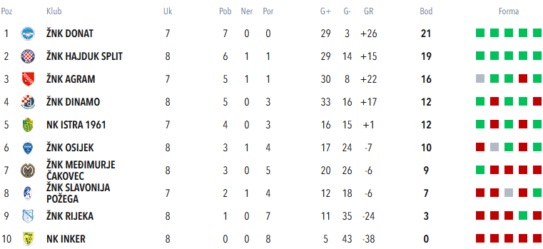 A na tablici je stanje zanimljivo. Donat je u ozbiljnom vodstvu, s utakmicom manje, cure gaze sve pred sobom, i da konačno titula stigne u Zadar … bilo bi mi puno drago ❤️❤️❤️.