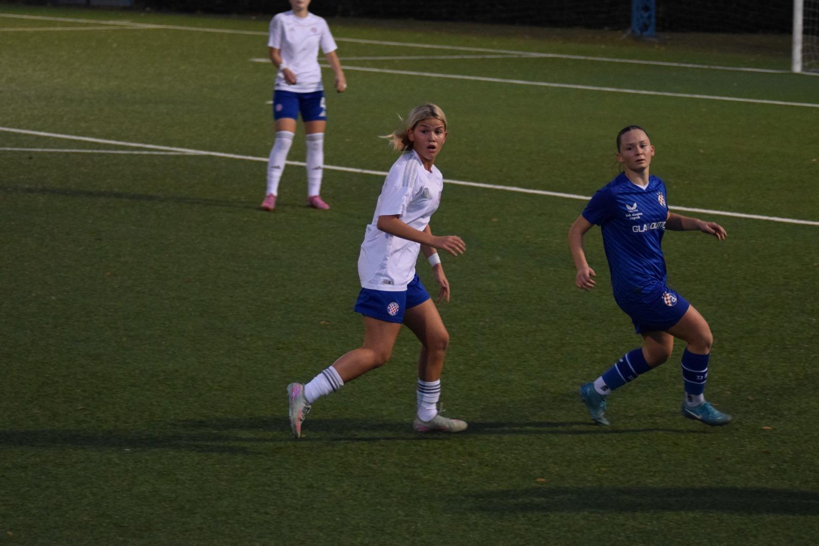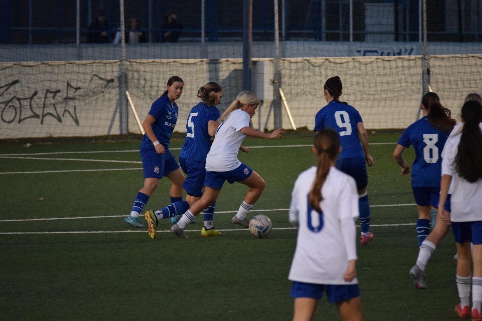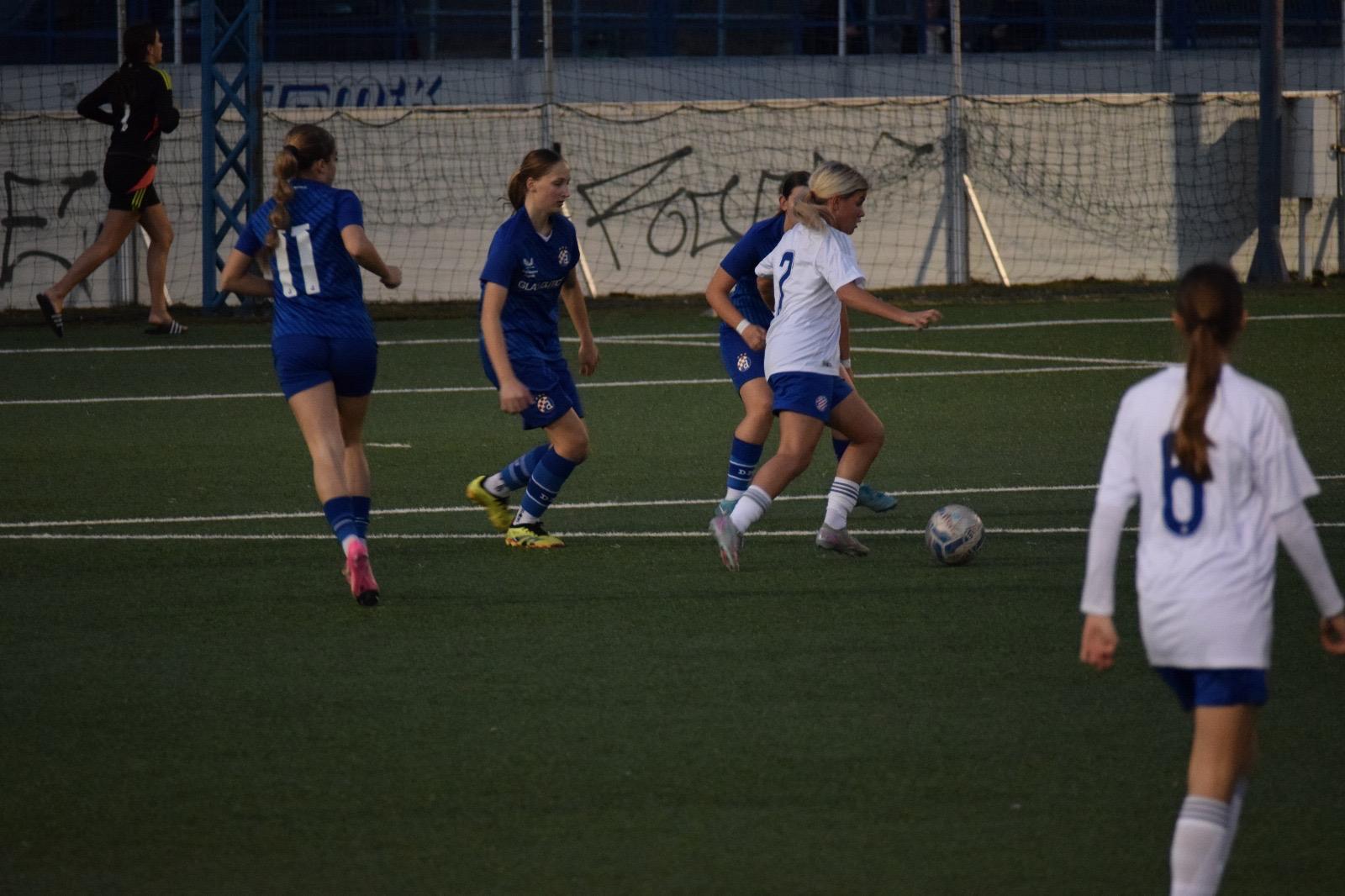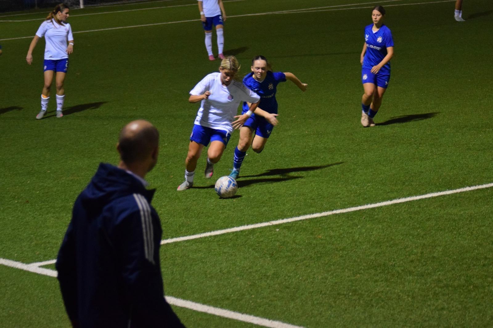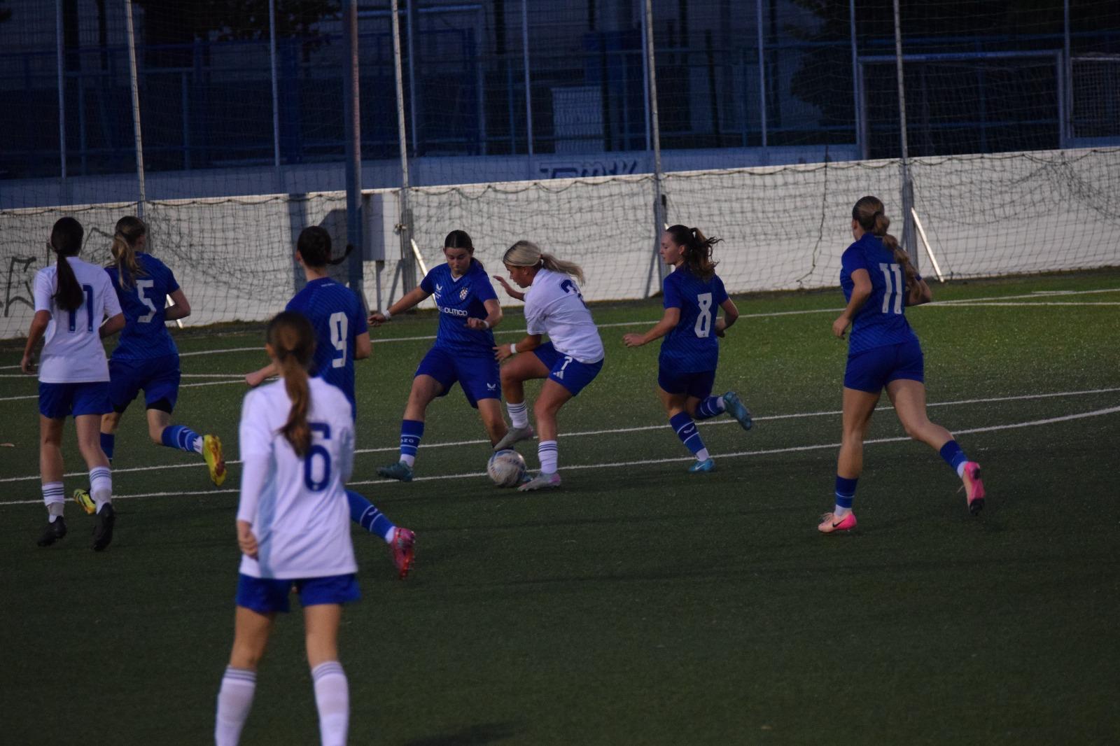 Gol je trgnuo igračice Dinama i iako su do kraja poluvremena Hajdučice i dalje bile bolja i opasnija ekipa, igra se ujednačila, Ema Čikvar je nastavila svojom brzinom stvarati probleme Hajdukovoj obrani i s “aktivnim” rezultatom 2 : 1 bilo je to lijepo nadigravanje do kraja poluvremena. S puno grešaka, da se razumijemo 🙄, jer ipak su to kadetkinje, ali bilo je i lijepih poteza a želja i angažman na obje strane su bili maksimalni.