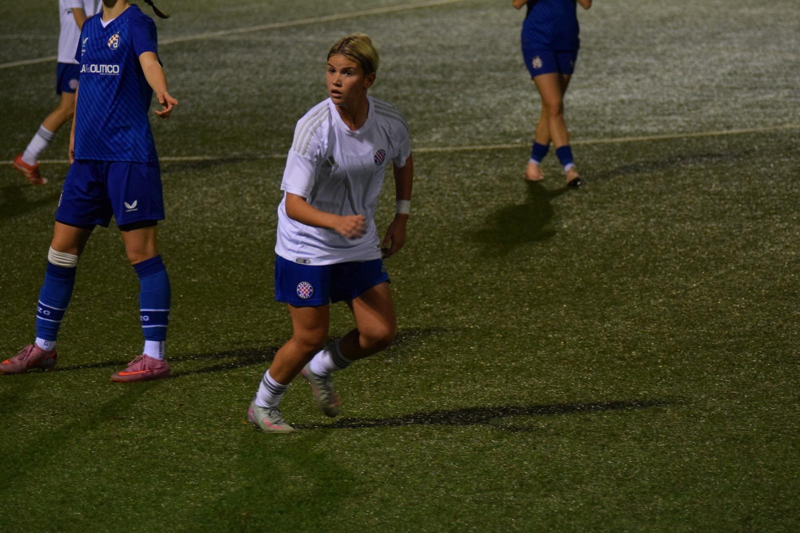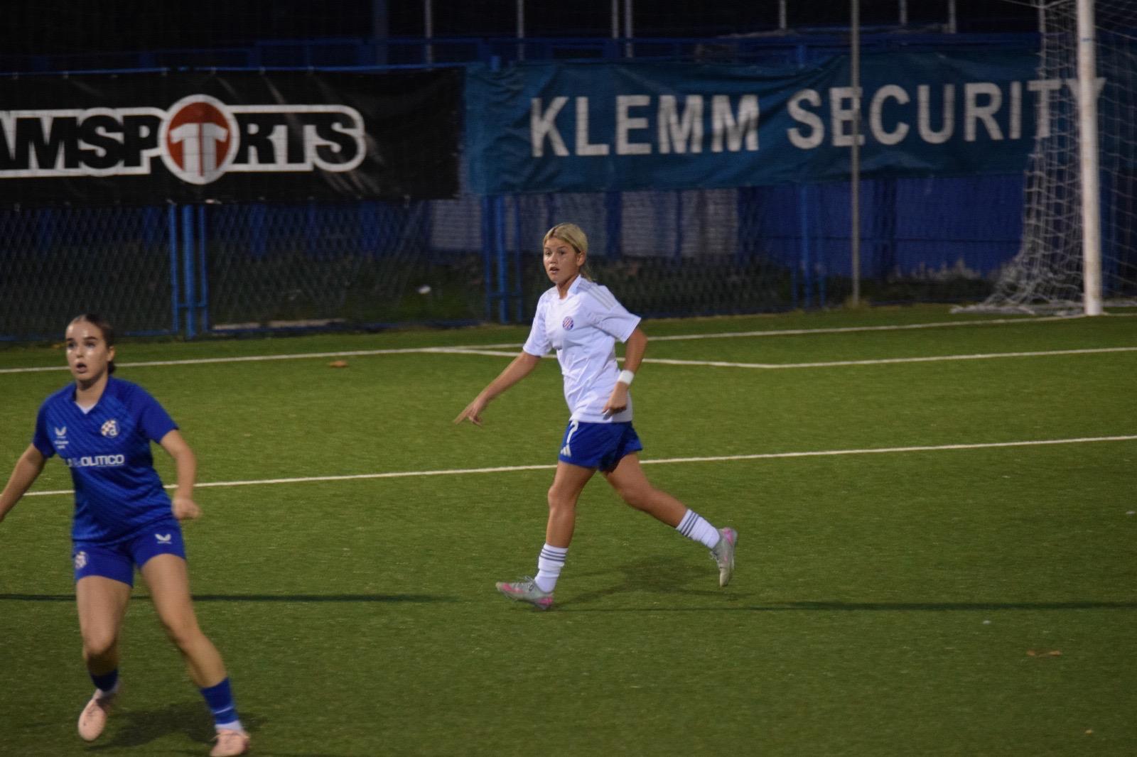 Čudesno brza, ma ko vjetar je brza ta djevojka, a već sad i s impresivnom tehničkom vještinom, i kako se sjurila s loptom s nekih 30, možda i 40ak metara od Hajdukovog gola, kao šilo kroz obranu Hajduka, sve dok nije sama izbila pred golmanicu i zabila rutinski pored nje … bome, to je bilo impresivno za vidjeti.