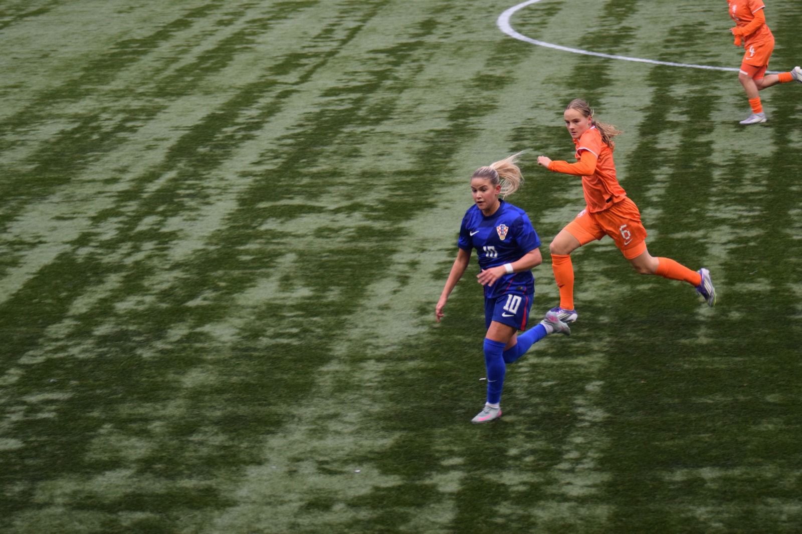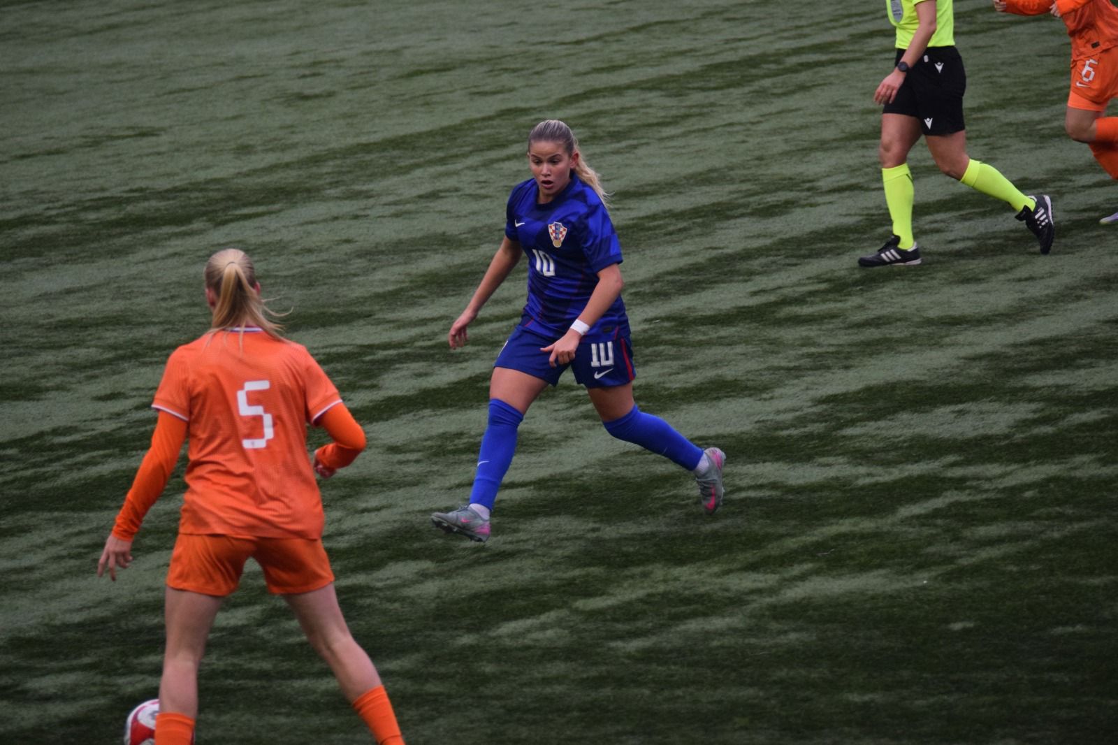 Pokušaji po krilima su bili opasniji, i Nizozemke su znale proći sve do našeg šesnaesterca, i po lijevoj i po desnoj strani, ali opet, ubačaje koji bi nakon tog uslijedili su naše igračice, zajedno s Nikom na golu, dosta uspješno rješavale.