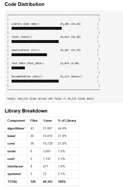 S početnih 15-ak tisuća linija programskog kôda, MML.h je došao do impresivnih 50K (uz još 100K u testovima i potpornom kôdu) 💪💪💪.