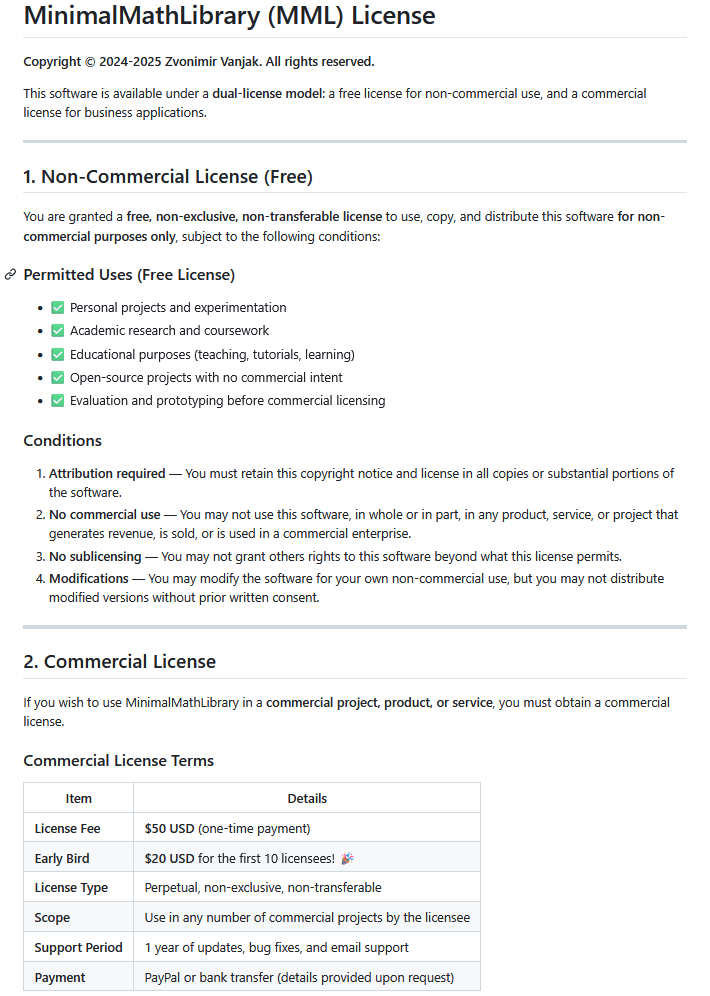 Uz sav taj trud, dosta sam promišljao i o načinu licenciranja MML-a, i na kraju sam odlučio zadržati postojeći dual licensing model, pri čemu sam dosta zadovoljan kako mi je to AI posložio .